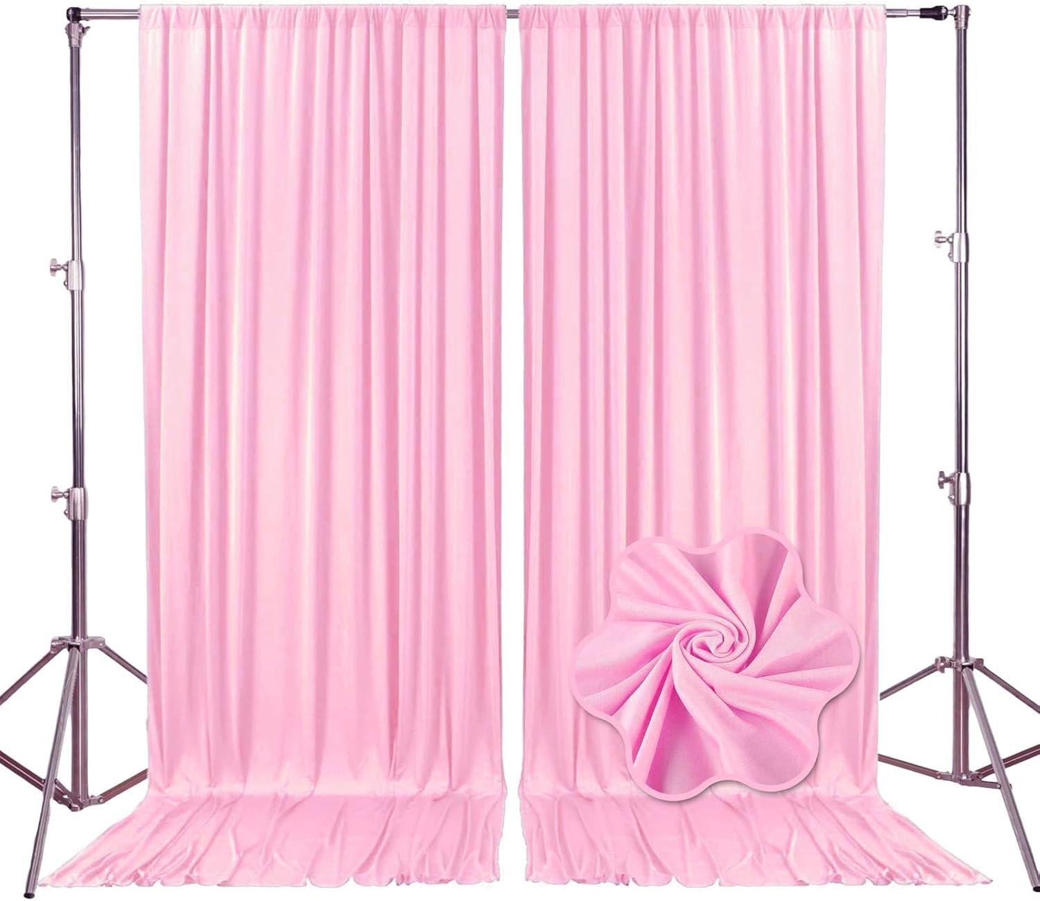 10ft x 10ft Rose Pink Backdrop Curtains for Parties, Fabric Satin Background Curtain with Rod Pockets for Weddings, Birthday, Baby Shower, Photography, Graduation Party Backdrop Drapes, 2 Panels
