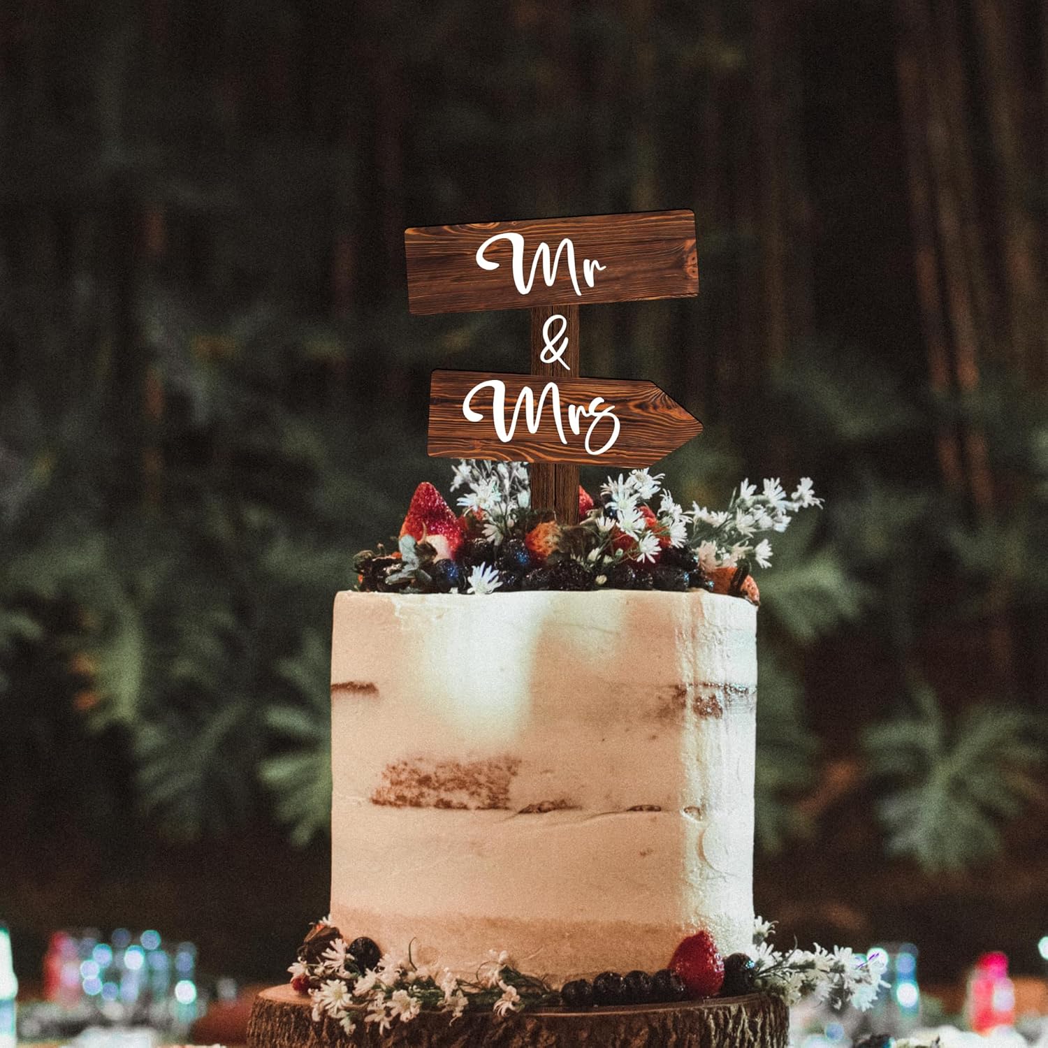 Rustic Mr & Mrs Cake Topper in Wood Cake Decoration for Wedding & Engagement