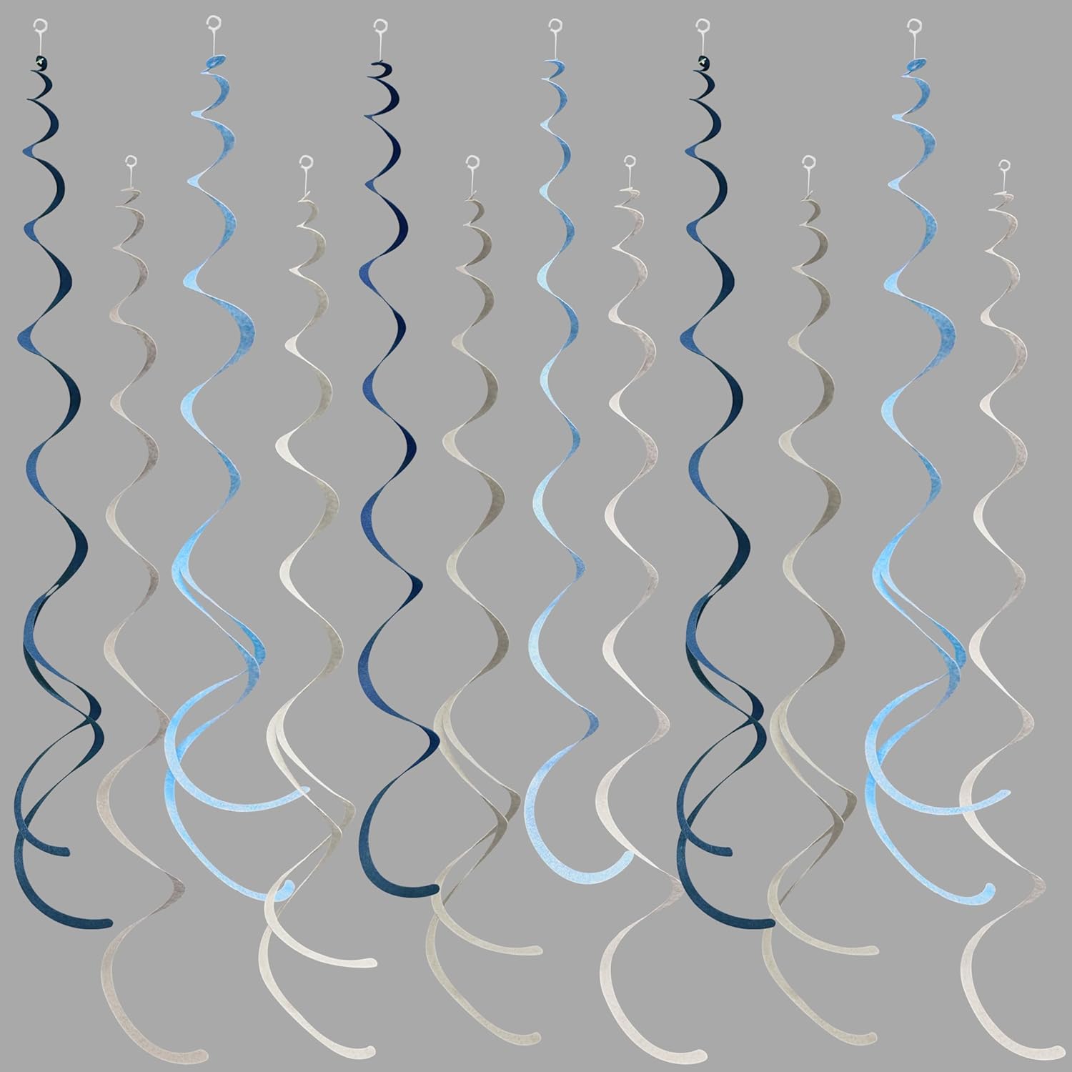 36 Pcs Dusty Blue Gray Hanging Swirl Decorations Navy Blue Grey Felt Swirl Streamer Spiral Ceiling Garland for Baby Shower Wedding Birthday Engagement Ahoy Achor Nautical Graduation Party Supplies