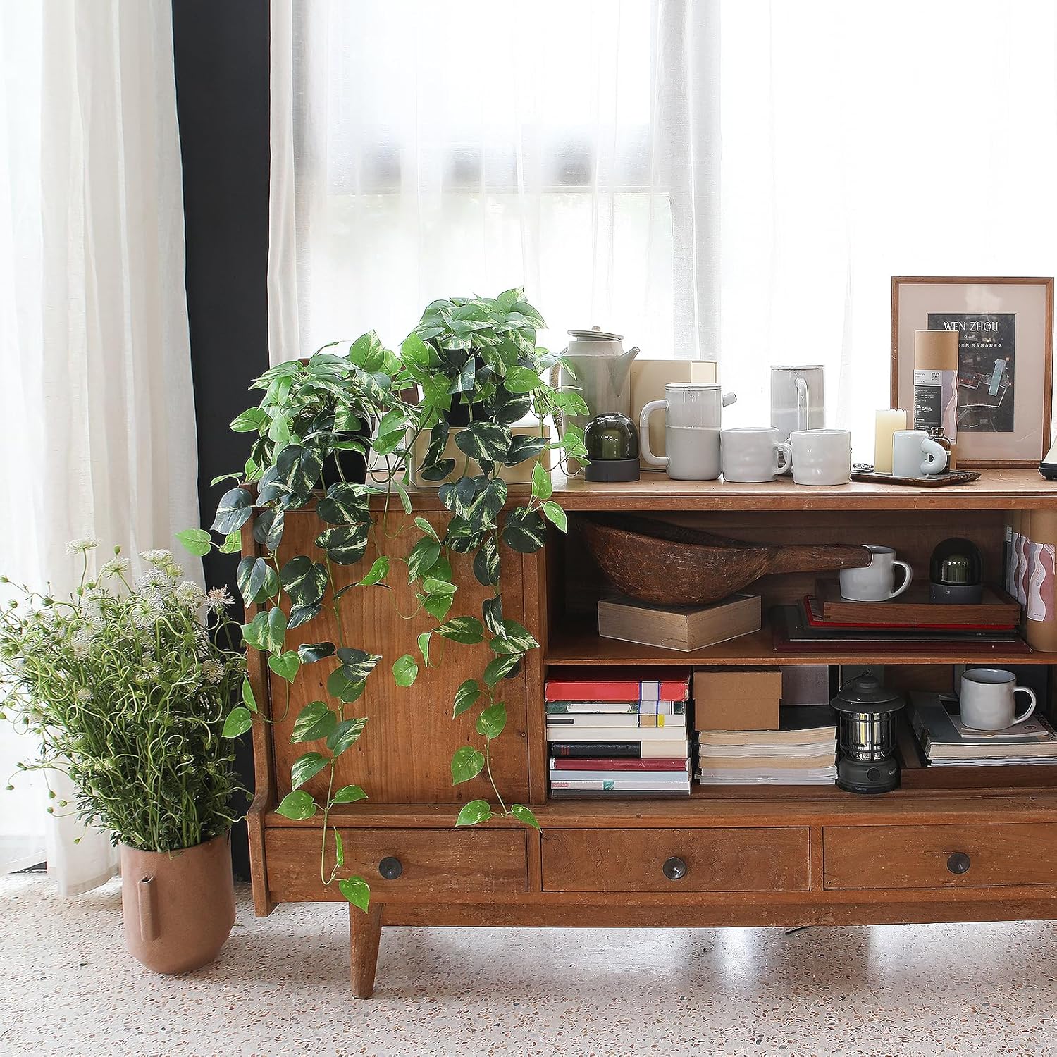 - Low-Maintenance Greenery - Each pot is lightweight and easy to move, and the removable leaves make cleaning a breeze. Combine with other faux pothos or fake ivy vines for a fuller, layered green look—no mess, no fuss.No installation required. Just take it out and use it.