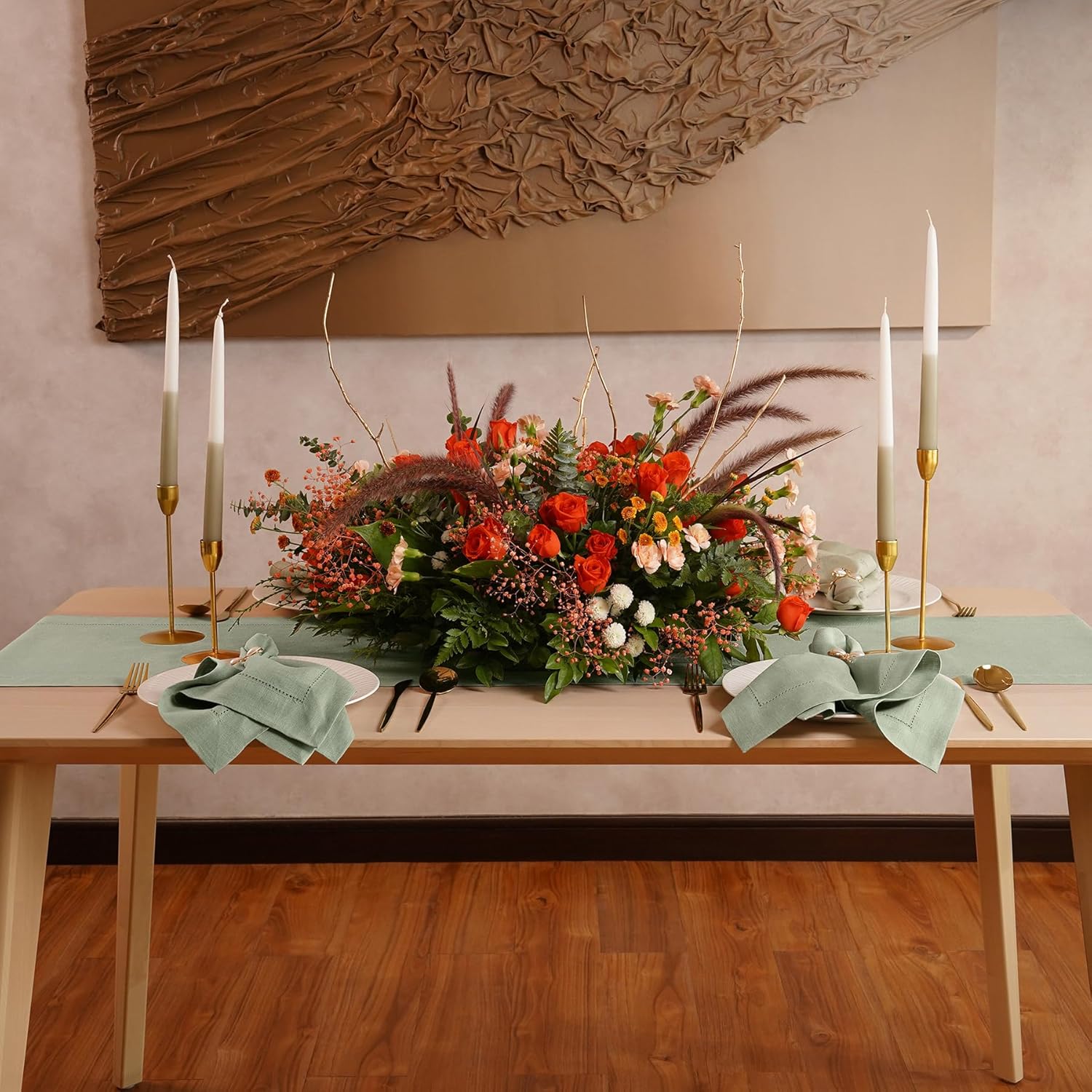 Linen Table Runner 90 inches Long – 100% Pure Linen Sage Green Hemstitch Table Runner 14 x 90 Inch for Dining, Spring, Summer, Wedding Decorations, Gift – Elara
