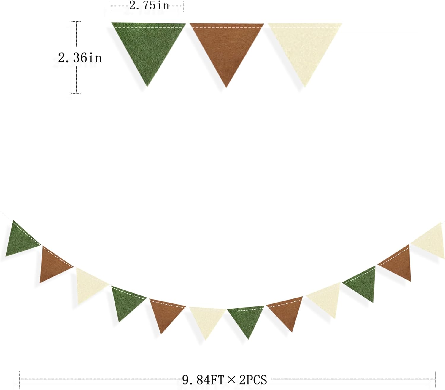 - Easy Assembly - Easy hanging and reusable.Perfect fit for safari jungle party decor.unroll and unwrap garland carefully. due to delicate nature of thread,may tangle.This sage green brown mini triangle pennant makes an attractive backdrop for videos and photos.