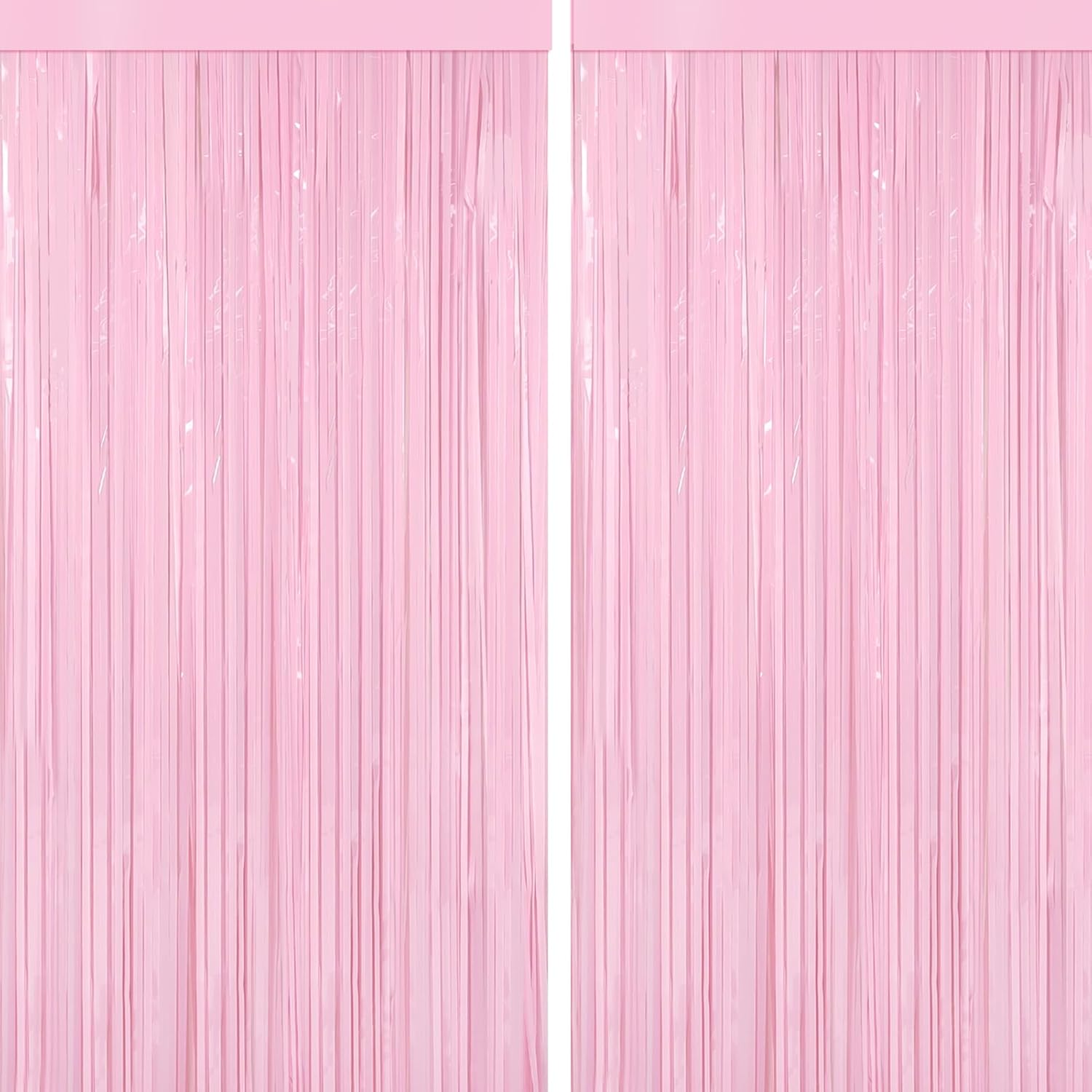 - Baby Pink Fringe Backdrop: You will get 4 Pcs baby pink tinsel backdrop. Size: 6.6ft*3.3ft. The foil fringe curtains are perfect for the door or wall to create an impressive decoration for parties, events, and photo booths.