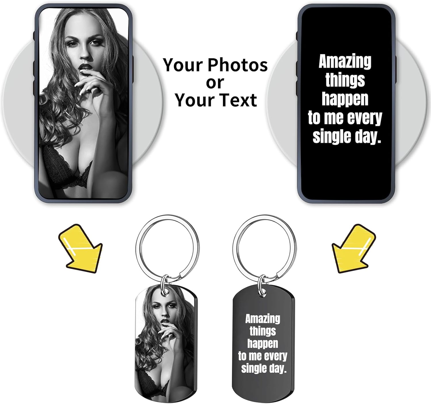 - ❤Personalized Keychain With Photos - You can click "Customize Now" to upload your favorite high - definition pictures and the text you want to customize. We have a variety of colour for you to choose, You can use your imagination to create an unique keychain for yourself or your loved ones.