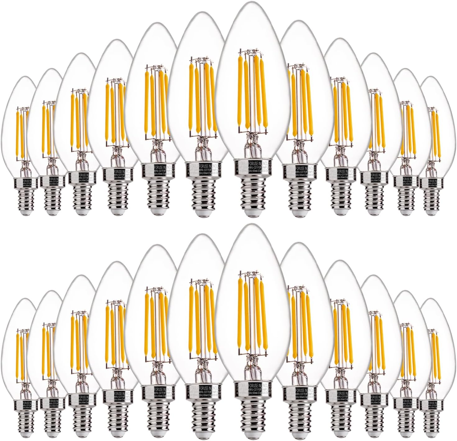 FLSNT 60W Equivalent LED Chandelier Light Bulbs, Dimmable LED B11 E12 Candelabra Base Bulbs, 3000K Warm White, 500LM, 24 Pack