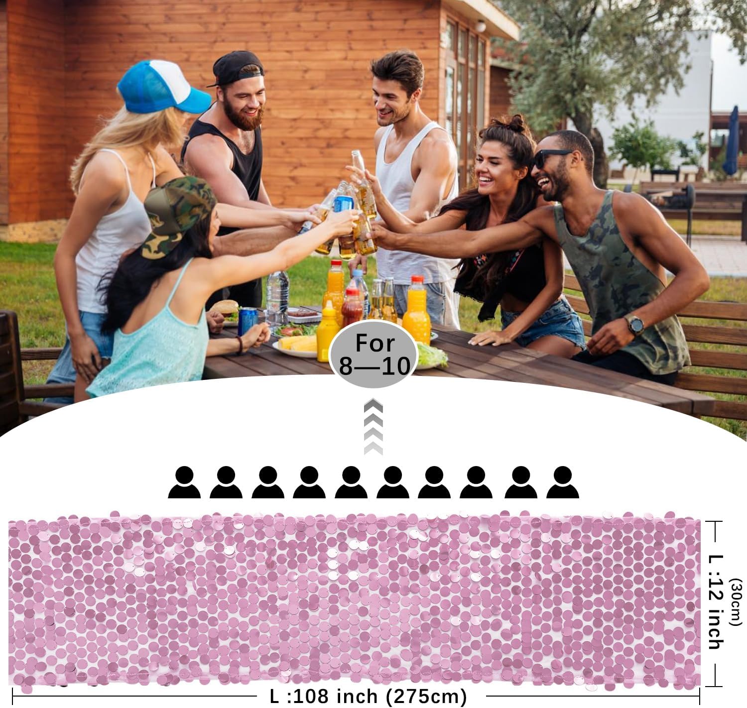 - Size: The 12" x 108" sequin table runner is suitable for tables that can accommodate 8-10 people. Great ideal for wedding table decorations for the reception.