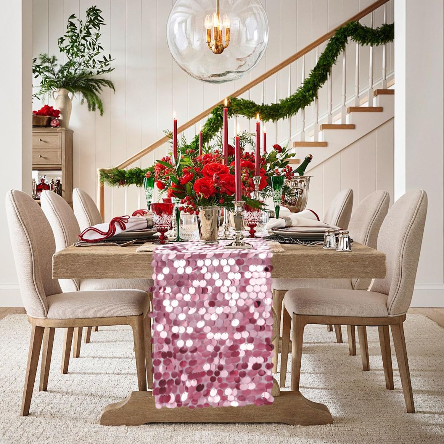 - What You Get: The package includes 1 pink sequin table runner.