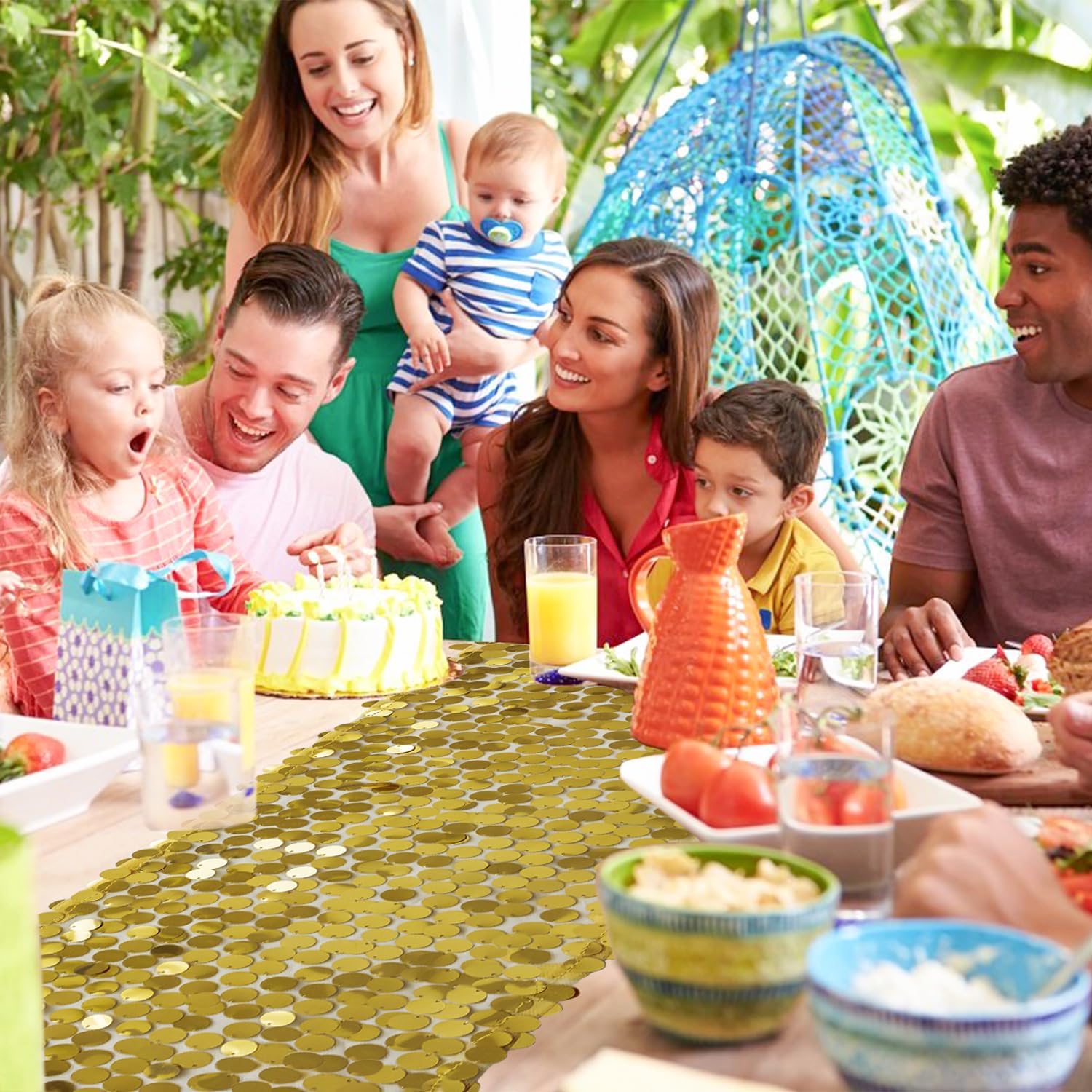 - Material: Our sequin table runner is made of large and round metal Payette, 18mm glitter round sequins sew tightly on the mesh fabric without worrying about the sequins falling.