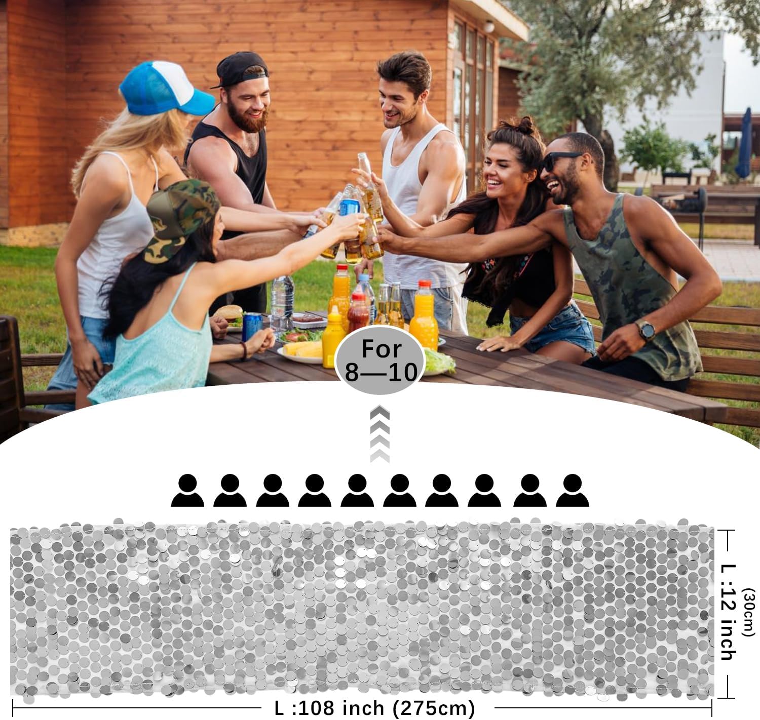 - Size: The 12" x 108" sequin table runner is suitable for tables that can accommodate 8-10 people. Great ideal for wedding table decorations for the reception.