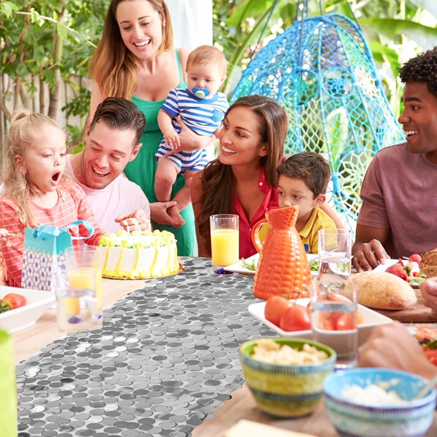 - What You Get: The package includes 1 silver sequin table runner.