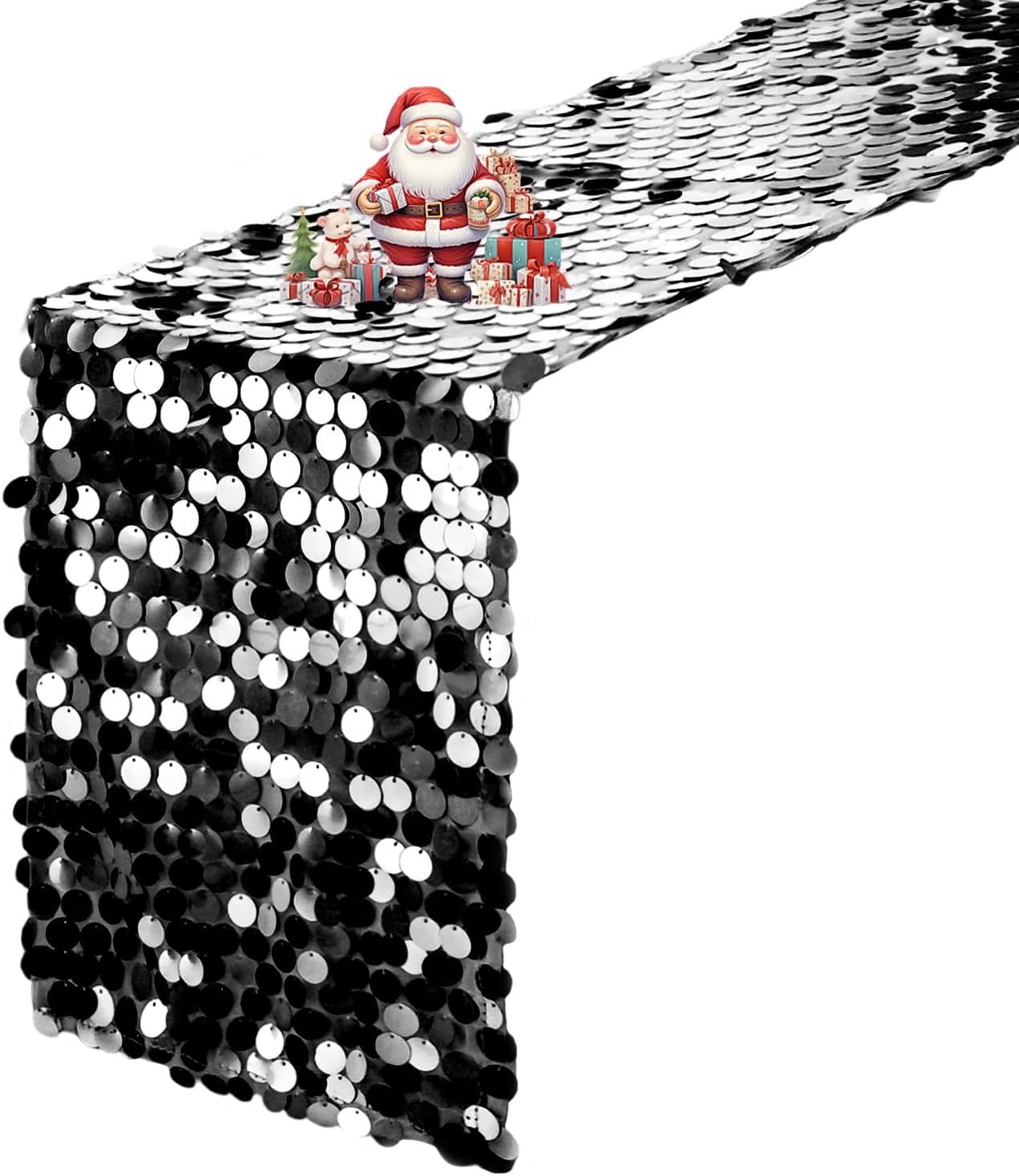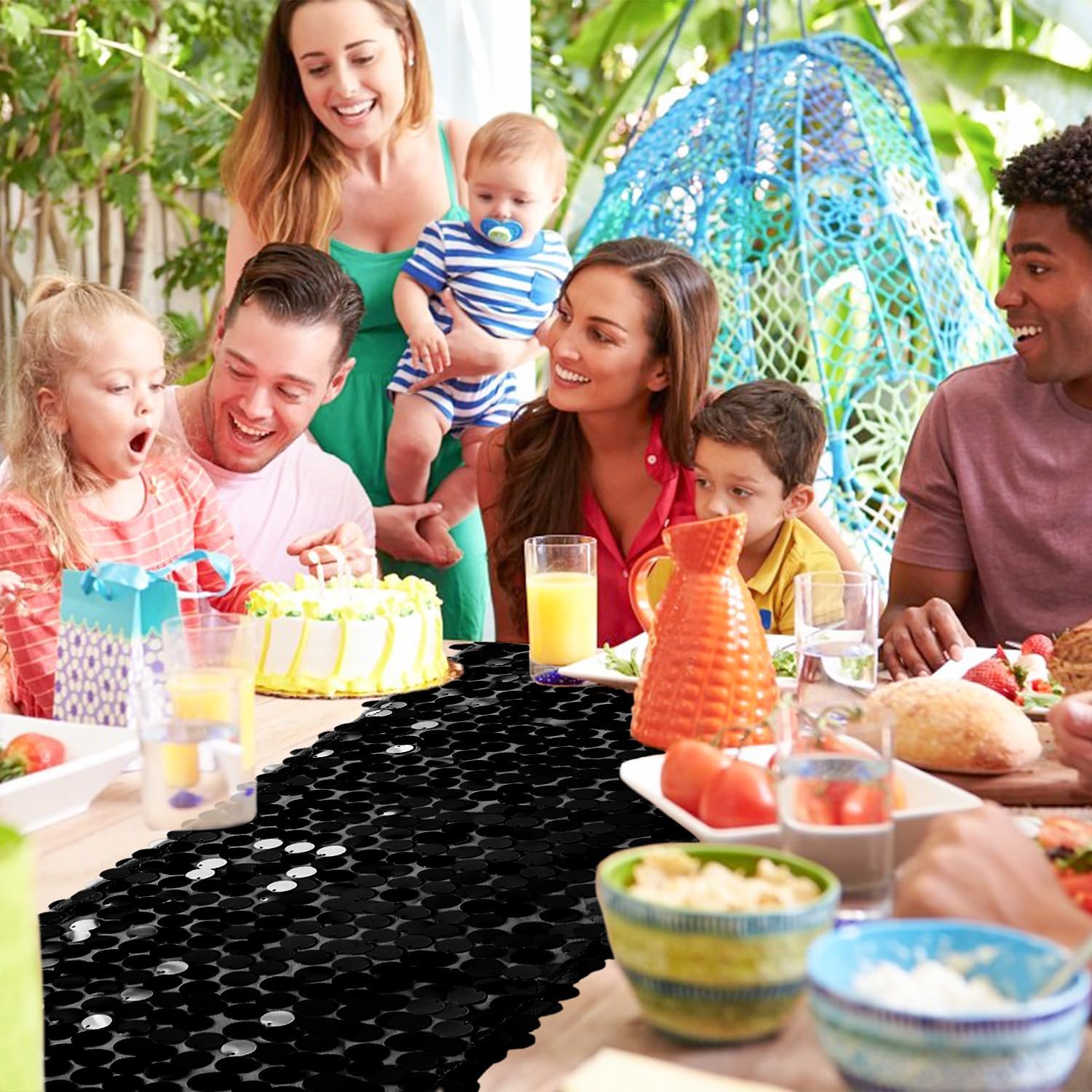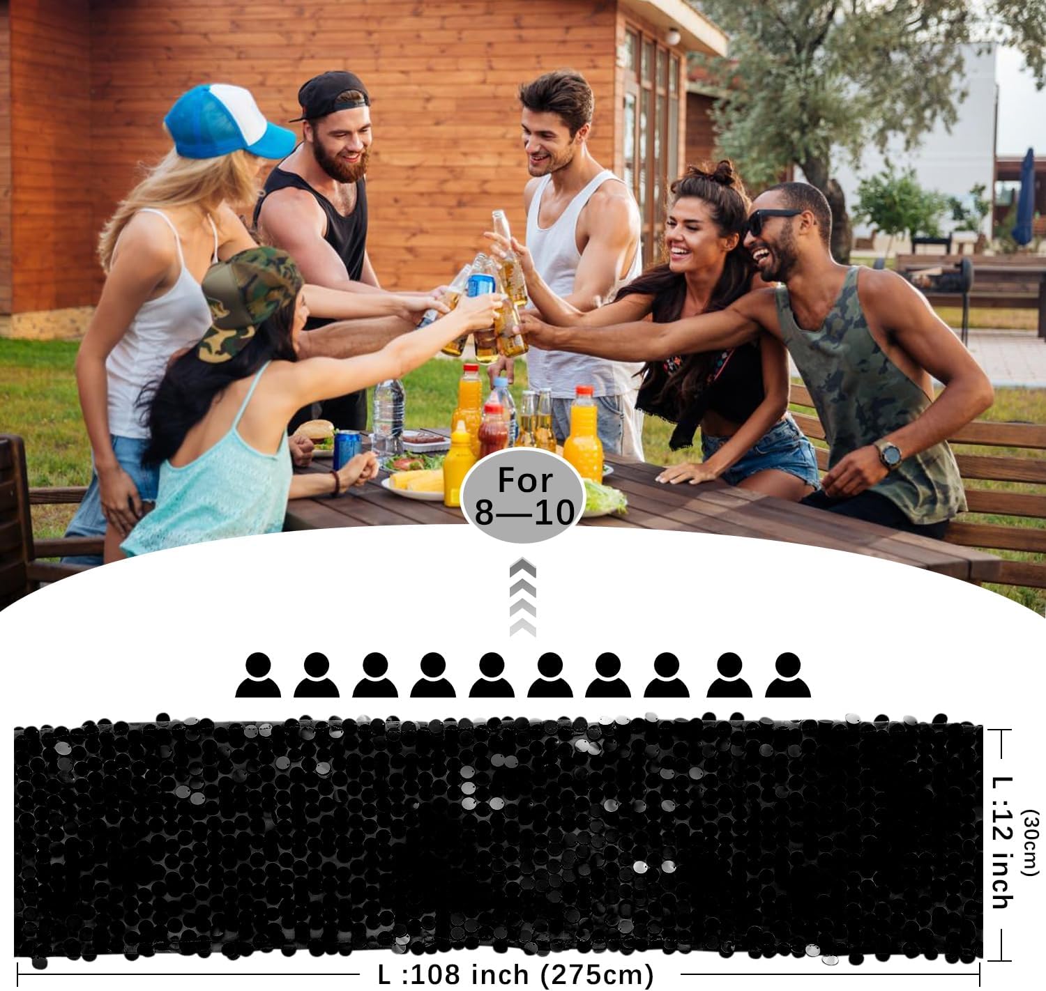 VHH Sequin Table Runner 12 x 108 inches Black Table Runner, Glitter Runner for Party Wedding Birthday, Party Spring Easter Rustic, Birthday Supplies Decorations (1 Pack).