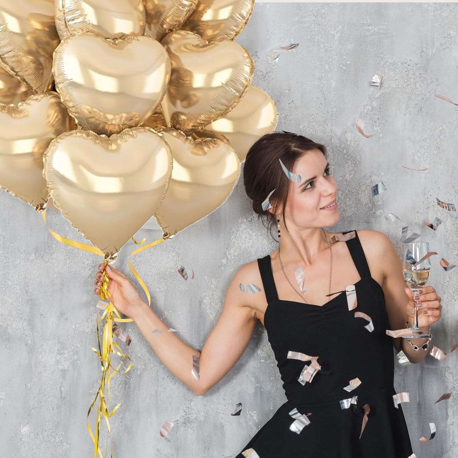 - Charming Champagne Gold Heart Balloons: Elevate your celebration with our set of 12 heart-shaped light gold balloons, each measuring 18 inches. Accompanied by a ribbon, these balloons are ideal for creating a festive and loving atmosphere at any special event.