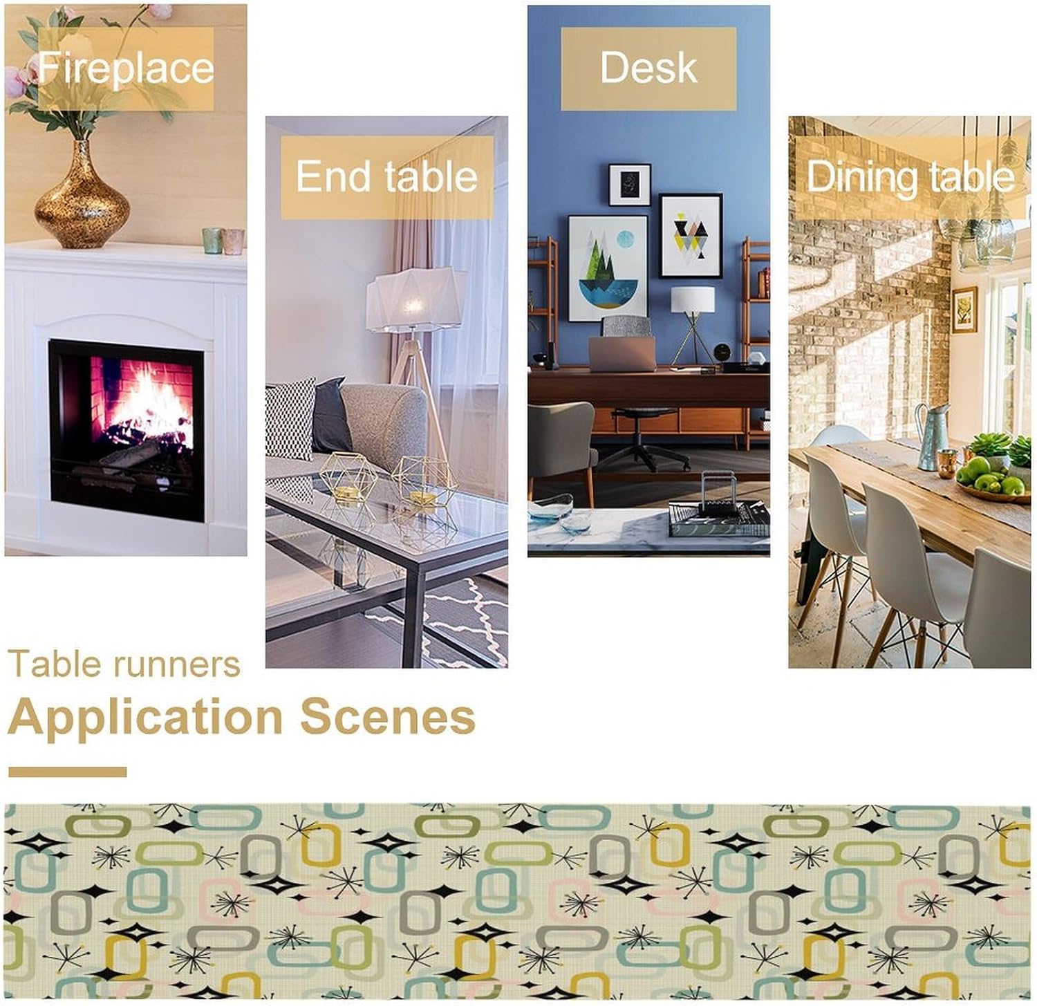 Mid Century Table Runner, Flag Retro Atomic Starburst 1950s Abstract Geometric Space Tabletop Decoration for Home Kitchen Restaurant Table Flag 13x36 Inch