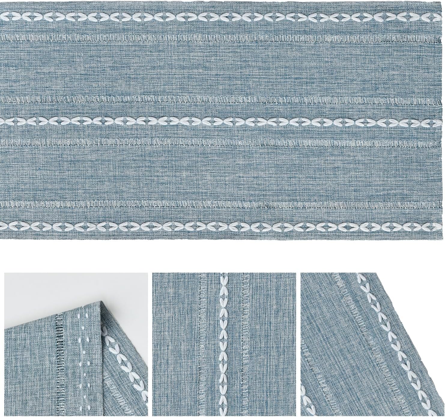 Artoid Mode Dusty Blue Cotton Linen Table Runner, Seasonal Rustic Embroidered Hollow Kitchen Dining Table Decoration for Home Party Decor 13x60 Inch