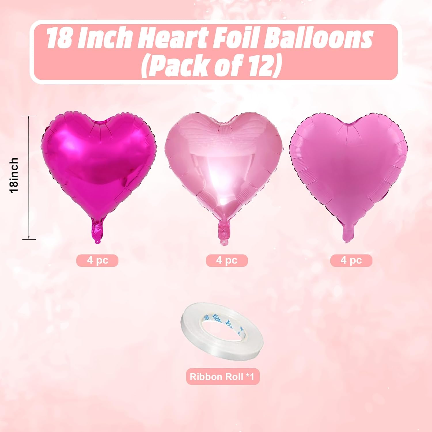 - Charming Pink Heart Balloons: Elevate your celebration with our set of 12 heart-shaped hot pink balloons, each measuring 18 inches. Accompanied by a ribbon, these balloons are ideal for creating a festive and loving atmosphere at any special event.