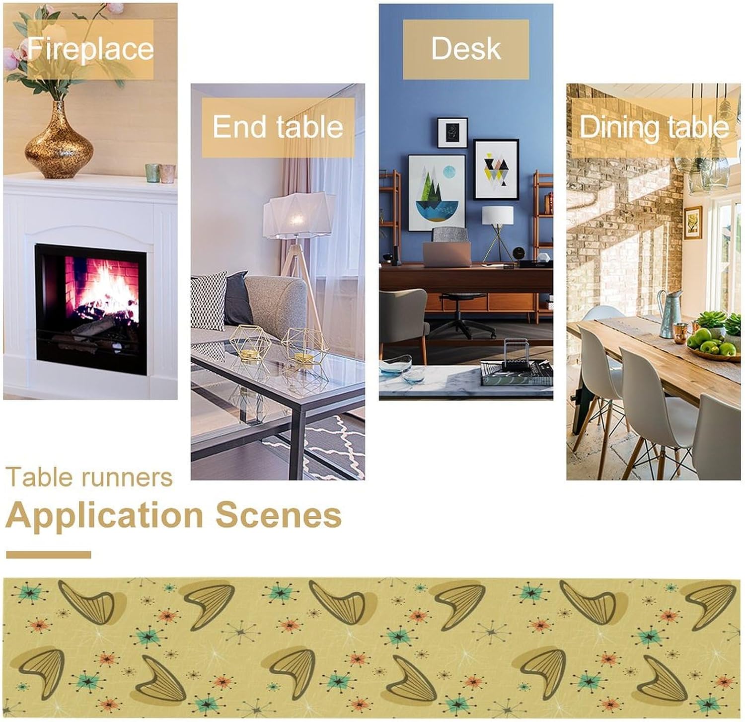 Mid Century Table Runner, Modern Atomic Pattern Absctract Geometric Retro 1950S 1960S Dinner Runner for Home Kitchen Dining Table Decoration, 13x108 Inch