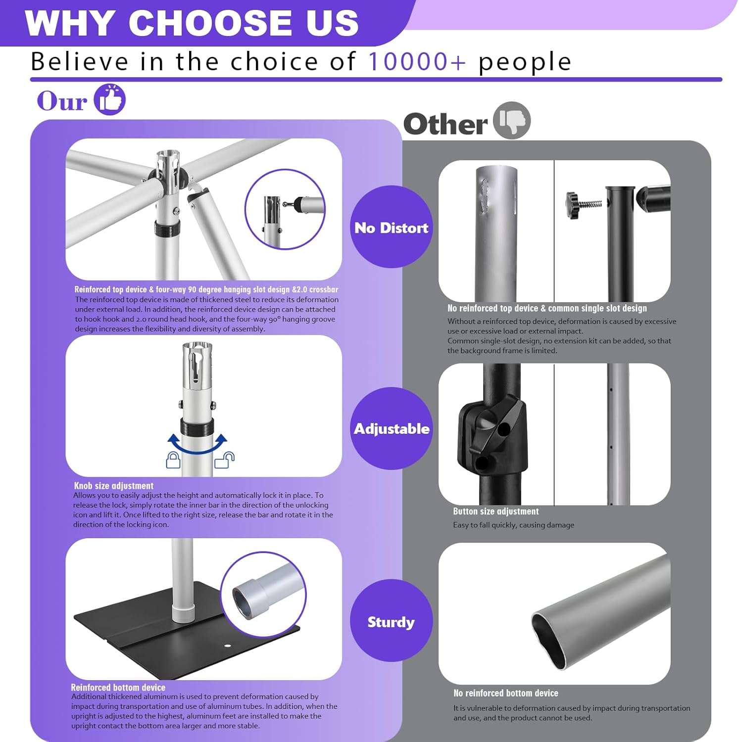 - 【Sturdy Aluminum Construction】 Built with high-quality, durable aluminum, this 10x10 FT backdrop stand is designed to withstand heavy use, making it ideal for professional photography, events, and outdoor setups