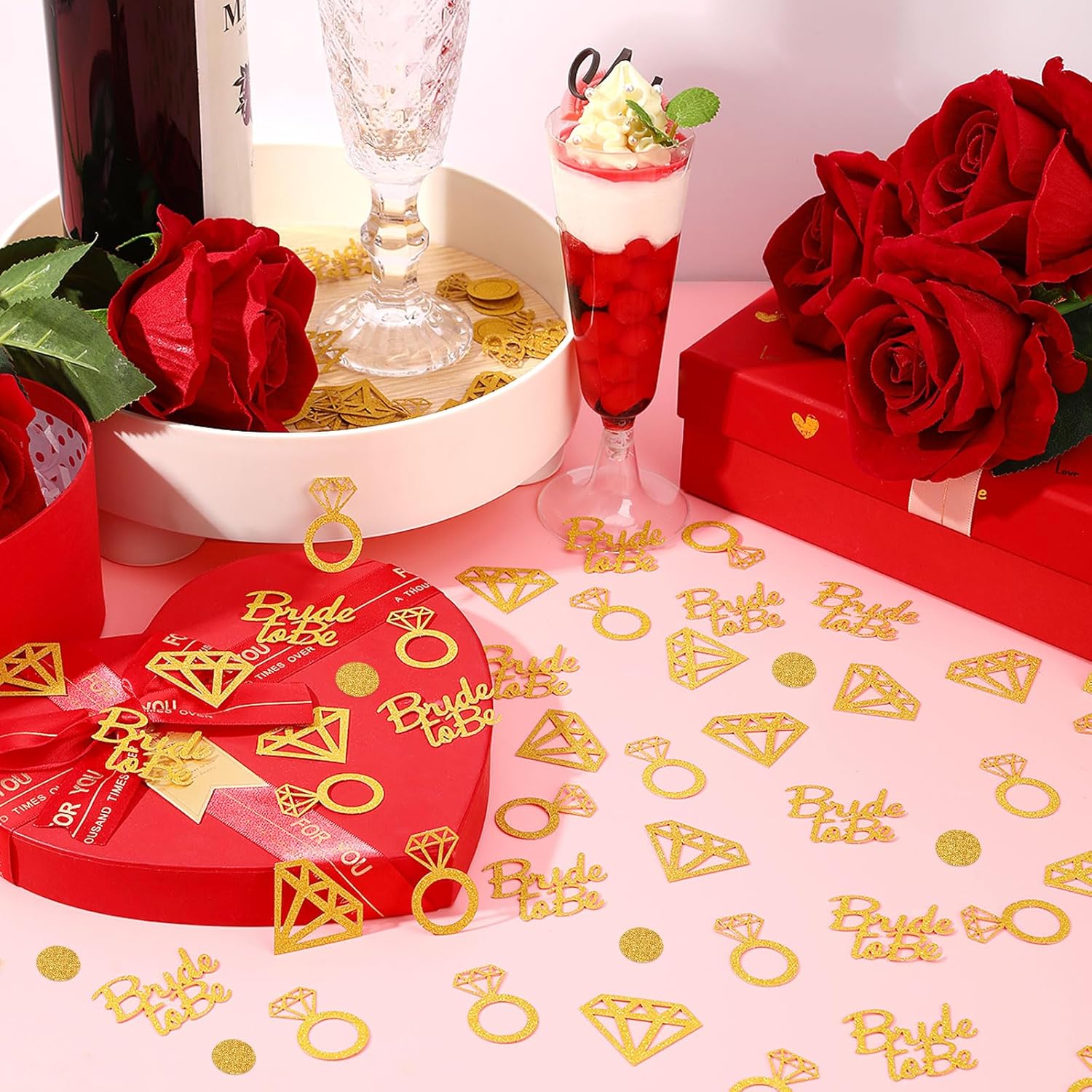 - Premium Materials: Gold diamond ring and bridal to be confetti is made of good-quality paper, tough and not easy to be damaged. Both sides are covered with dazzling golden glitter powder, which not only shines under the light, but also lasts for a long time, adding a luxurious texture to your wedding and ensuring that every piece of bridal shower decorations can be ideally displayed