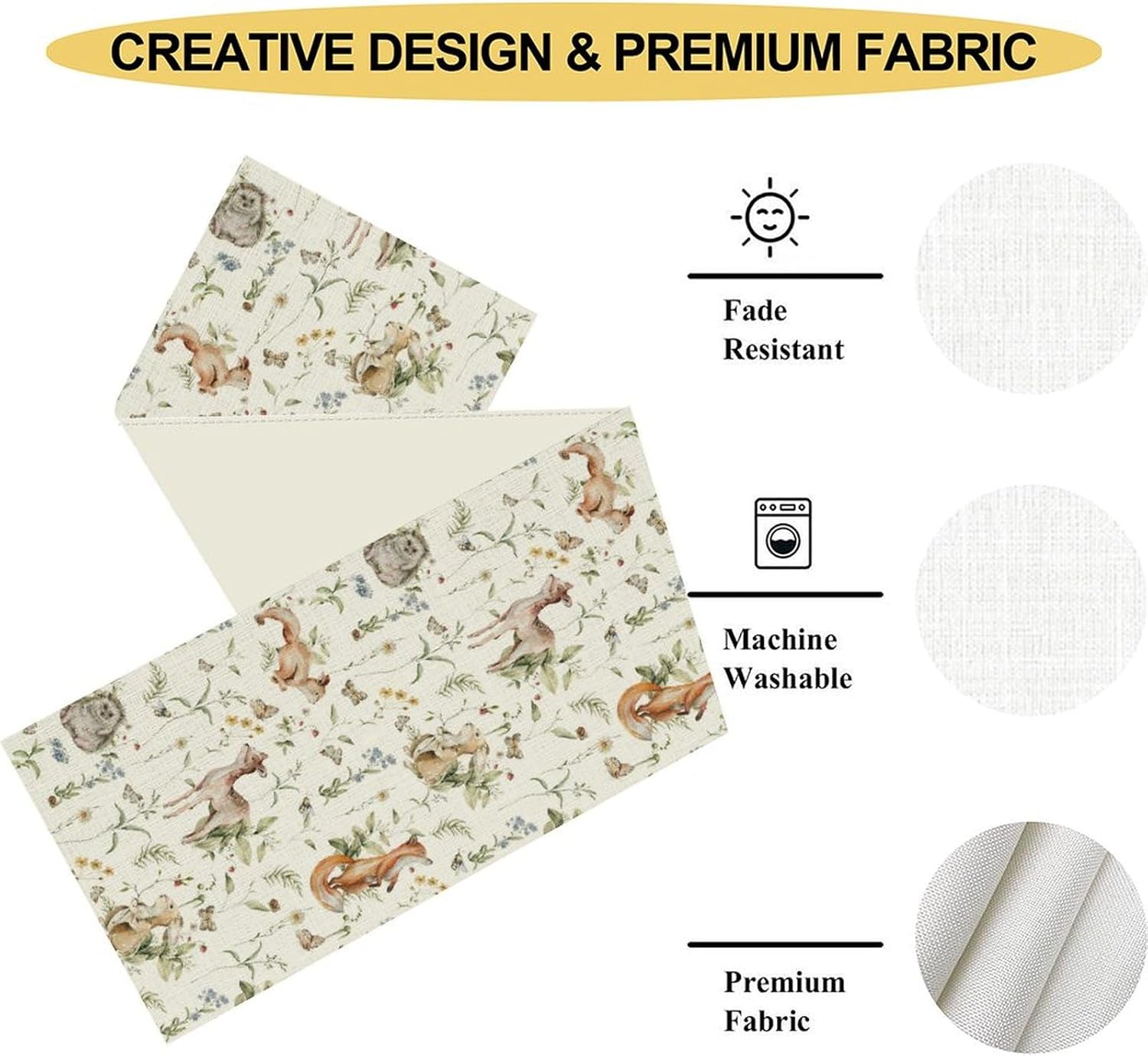 - Various Occasions: The cute table runner widely used in the kitchen, dining room, outdoor table, parties, birthday, or any other special occasion. Suitable for most rectangular table, round table and square table. The watercolor woodland table runners not only as dining table but also tea table, shoe cabinet, washing machine and TV stand, etc. It's also an ideal gift for Christmas, birthdays, weddings or parties as well.