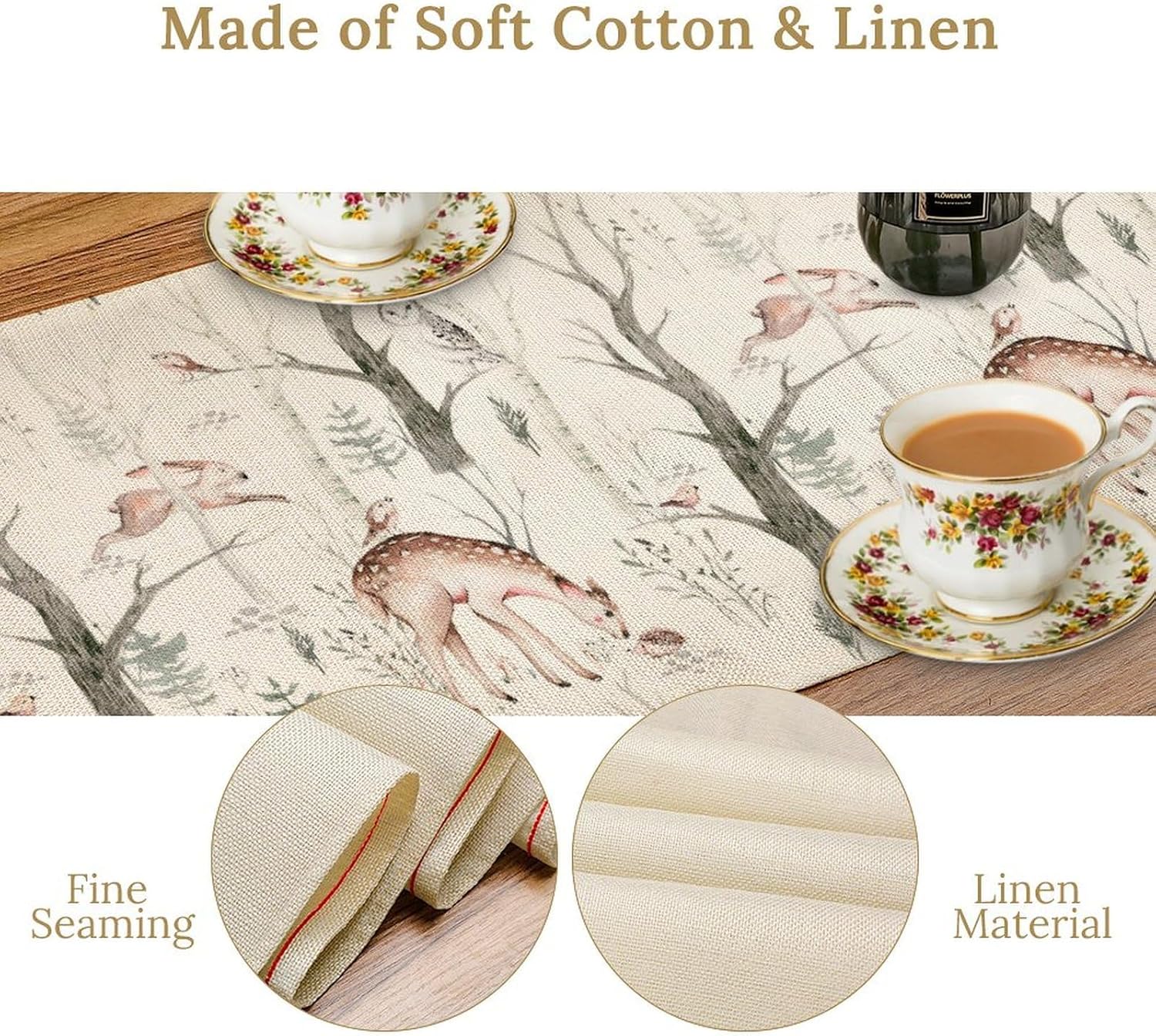 - Various Occasions: The cute table runner widely used in the kitchen, dining room, outdoor table, parties, birthday, or any other special occasion. Suitable for most rectangular table, round table and square table. The watercolor woodland table runners not only as dining table but also tea table, shoe cabinet, washing machine and TV stand, etc. It's also an ideal gift for Christmas, birthdays, weddings or parties as well.