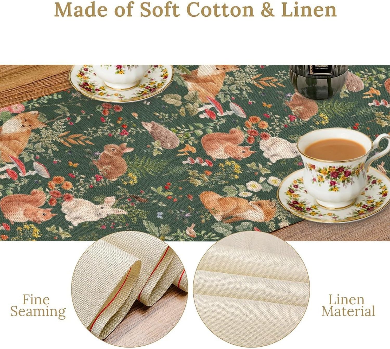 - Various Occasions: The cute table runner widely used in the kitchen, dining room, outdoor table, parties, birthday, or any other special occasion. Suitable for most rectangular table, round table and square table. The watercolor woodland table runners not only as dining table but also tea table, shoe cabinet, washing machine and TV stand, etc. It's also an ideal gift for Christmas, birthdays, weddings or parties as well.