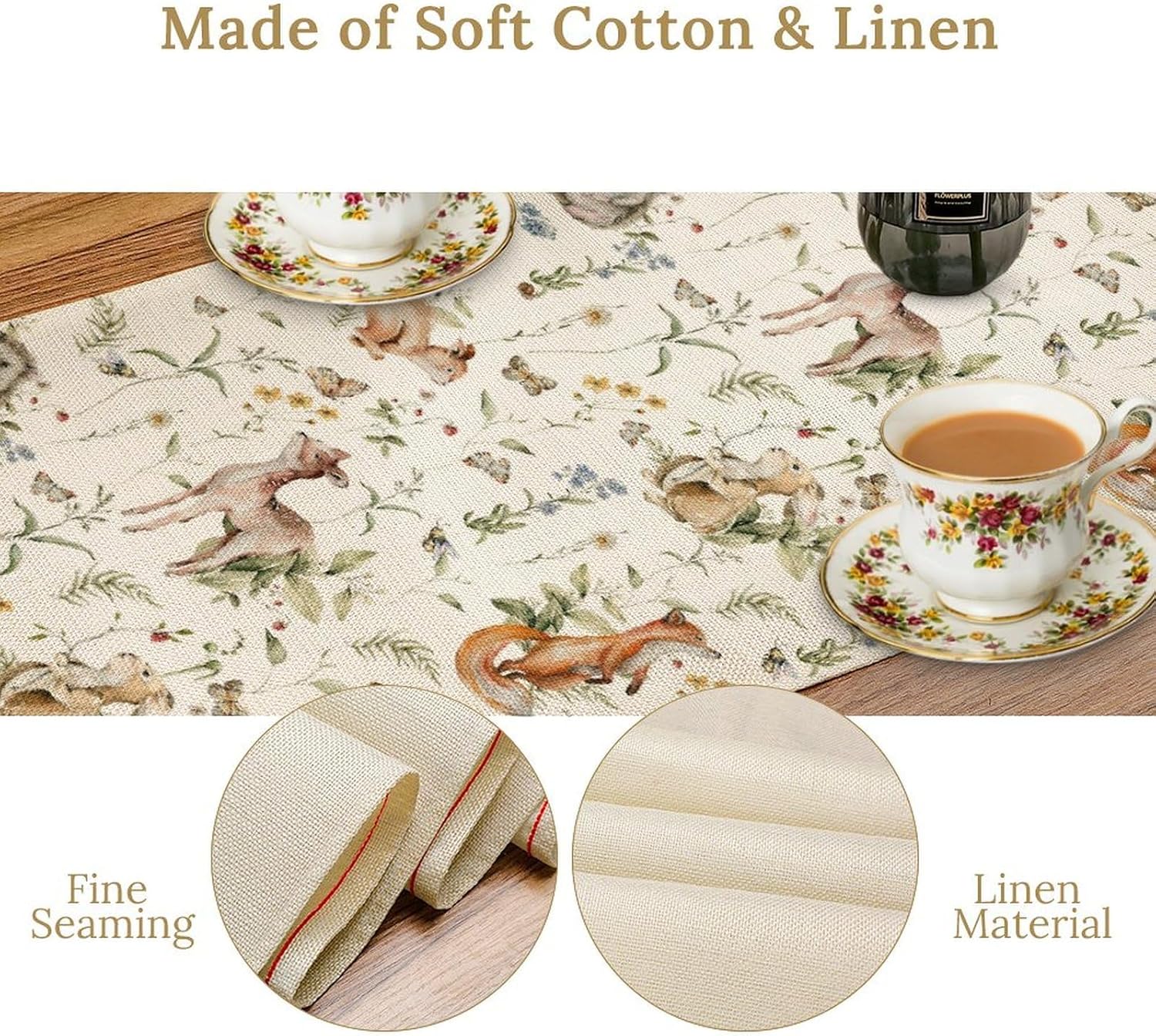 - Various Occasions: The cute table runner widely used in the kitchen, dining room, outdoor table, parties, birthday, or any other special occasion. Suitable for most rectangular table, round table and square table. The watercolor woodland table runners not only as dining table but also tea table, shoe cabinet, washing machine and TV stand, etc. It's also an ideal gift for Christmas, birthdays, weddings or parties as well.
