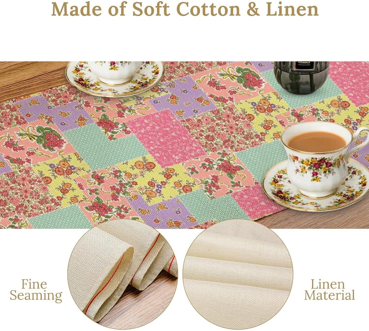 - Various Occasions: The cute table runner widely used in the kitchen, dining room, outdoor table, parties, birthday, or any other special occasion. Suitable for most rectangular table, round table and square table. The patchwork table runners not only as dining table but also tea table, shoe cabinet, washing machine and TV stand, etc. It's also an ideal gift for Christmas, birthdays, weddings or parties as well.