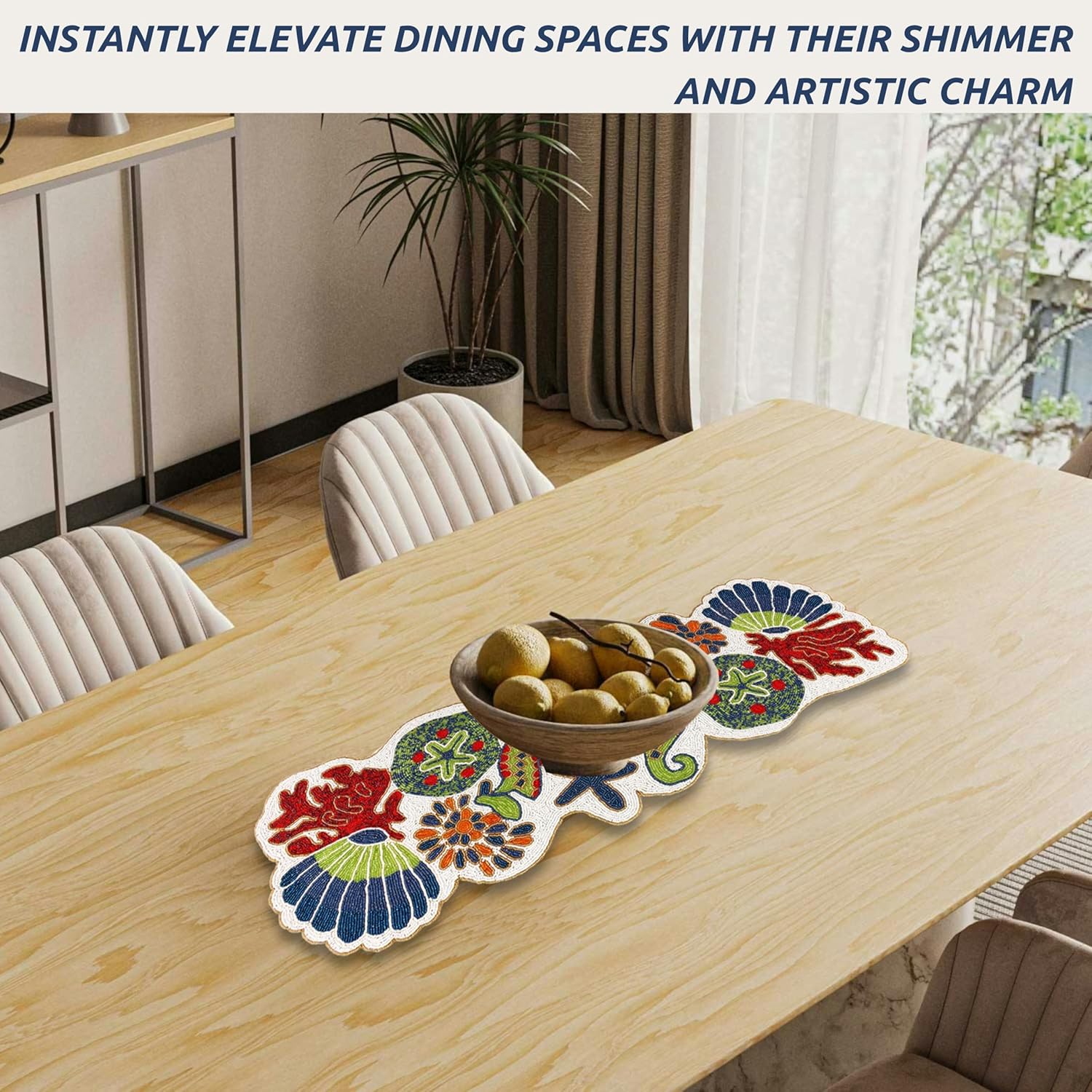 - ✅ Crafted with premium glass beads & polyester backing, this hand-sewn runner adds detailed texture & durability.