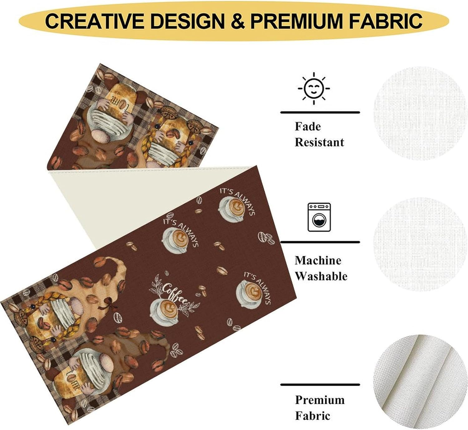 Coffee Time Table Runner, Farmhouse Retro Gnome Coffee Cup Tea Party Cafe Brwon Table Center Decor for Home Kitchen Dining Patio Holiday Party Indoor Outdoor Table Decorations,13"x36" Inch
