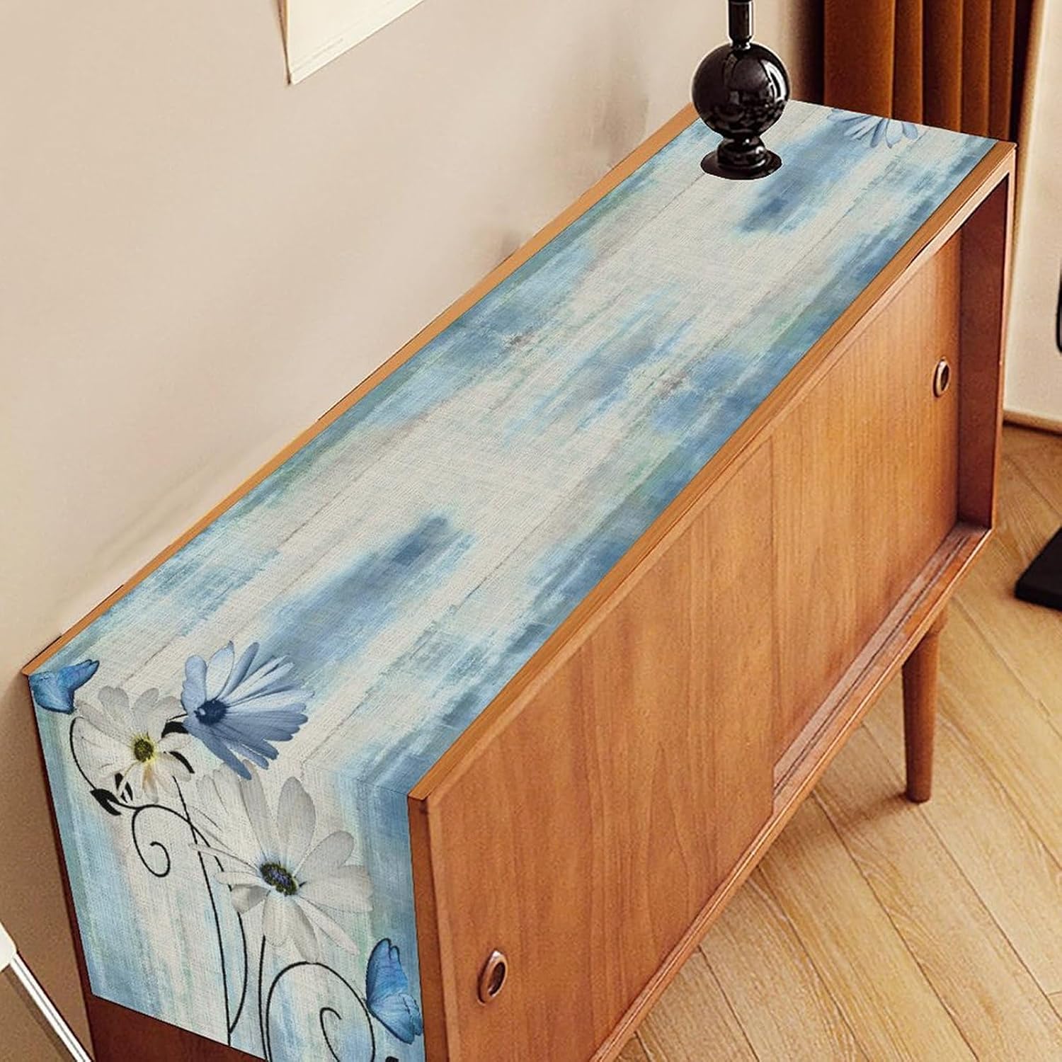 - Various Occasions: The rustic table runner widely used in the kitchen, dining room, outdoor table, parties, birthday, or any other special occasion. Suitable for most rectangular table, round table and square table. The daisy floral table runners not only as dining table but also tea table, shoe cabinet, washing machine and TV stand, etc. It's also an ideal gift for Christmas, birthdays, weddings or parties as well.