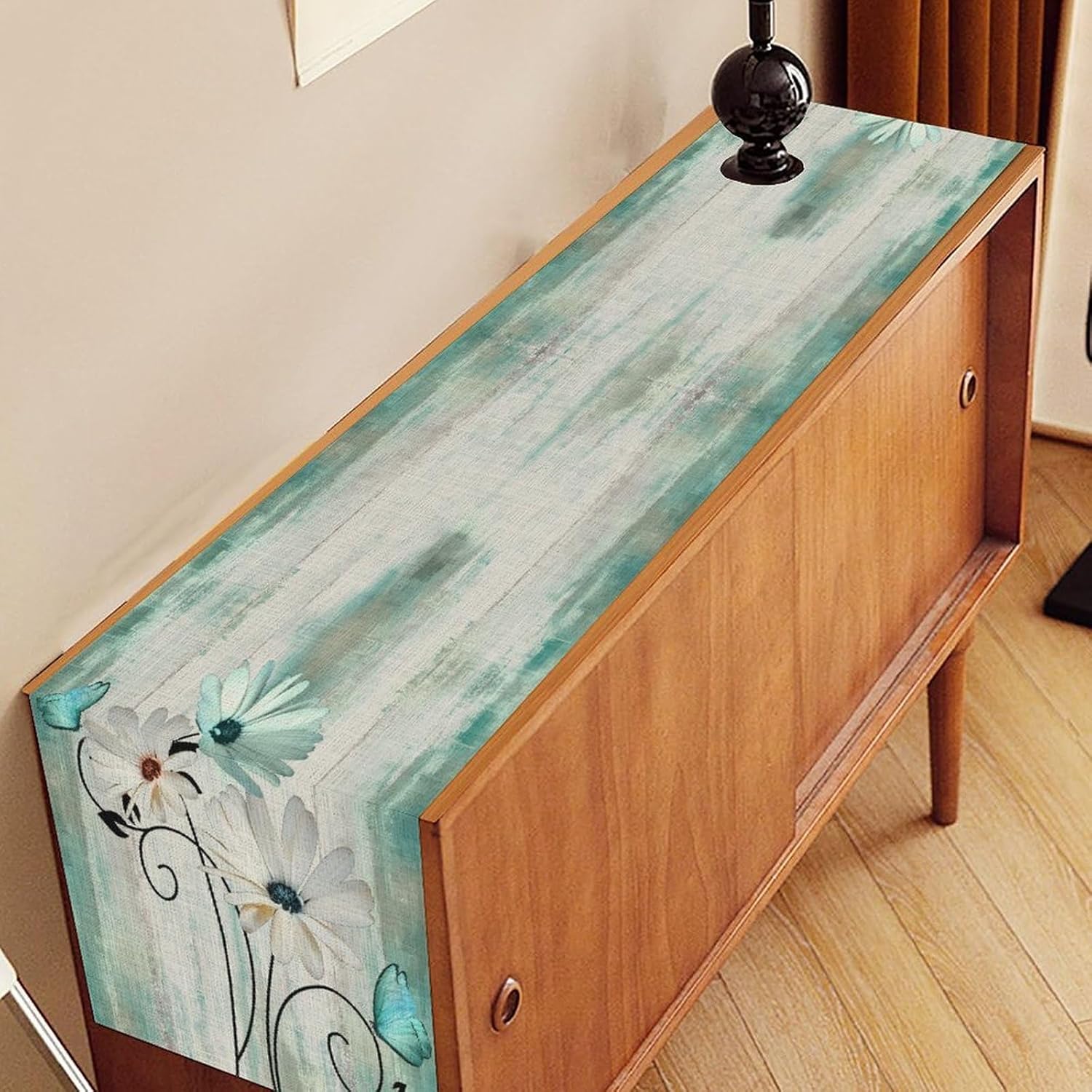 - Various Occasions: The rustic table runner widely used in the kitchen, dining room, outdoor table, parties, birthday, or any other special occasion. Suitable for most rectangular table, round table and square table. The daisy floral table runners not only as dining table but also tea table, shoe cabinet, washing machine and TV stand, etc. It's also an ideal gift for Christmas, birthdays, weddings or parties as well.