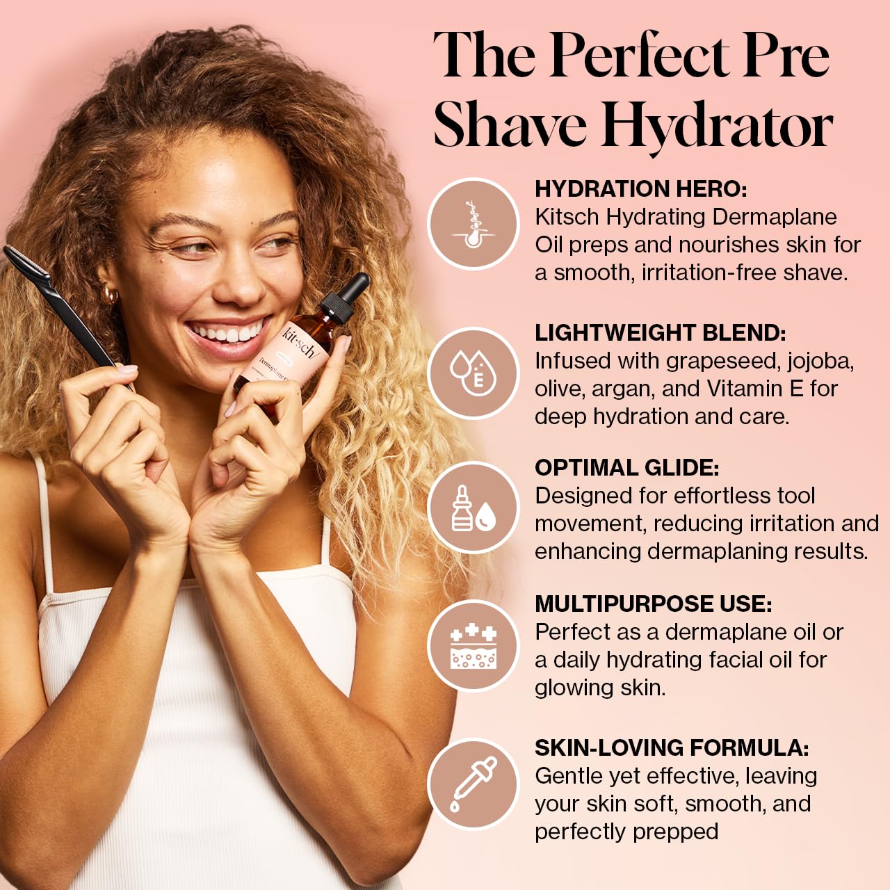 Kitsch Dermaplane Face Oil with Jojoba & Argan Oil – Hydrating Facial Formula for Dermaplaning Tool, Gua Sha & Razor Use – Irritation-Free Shave Oil for Soft, Radiant Skin – 2oz