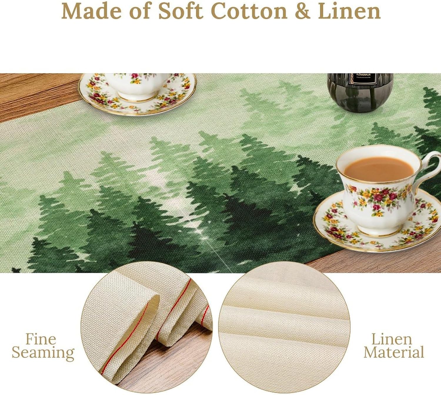 Foggy Forest Table Runner,Watercolor Wreen Misty Forest Landscape Table Runner for Kitchen Dining Table Home Party Decoration 13x72 Inch