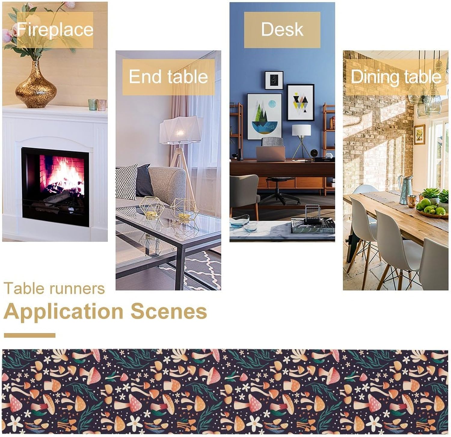 Mushroom Table Runner,Retro Forest Plant Table Cloth Farmhouse Kitchen Dining Table Decoration for Home Party Decor 13x90 Inch