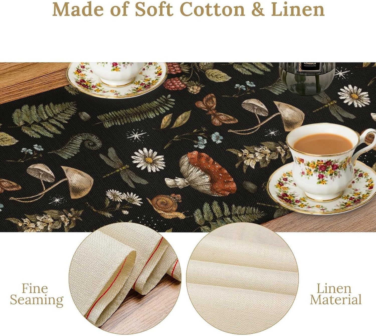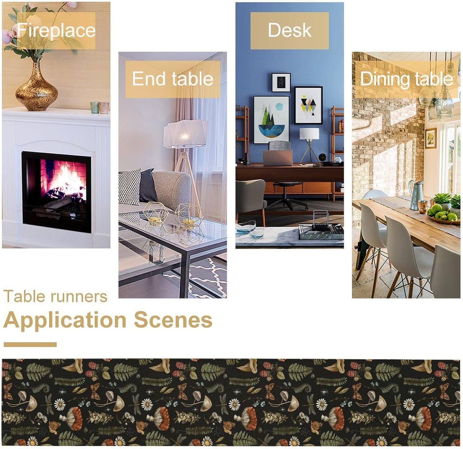 Mushroom Table Runner,Retro Forest Plant Table Runner for Kitchen Dining Table Home Party Decoration 13x108 Inch