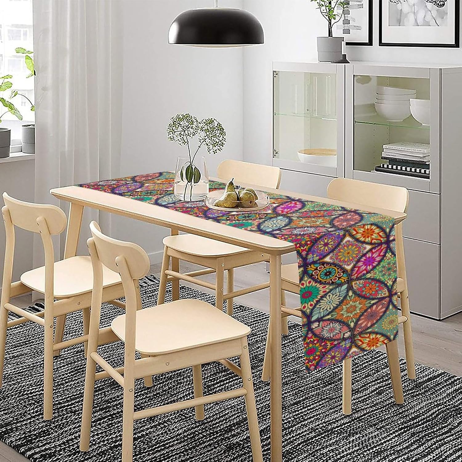 Boho Floral Table Runner,Colorful Flower Retro Bohemian Table Cloth Kitchen Dining Table Home Party Decoration 13x60 Inch