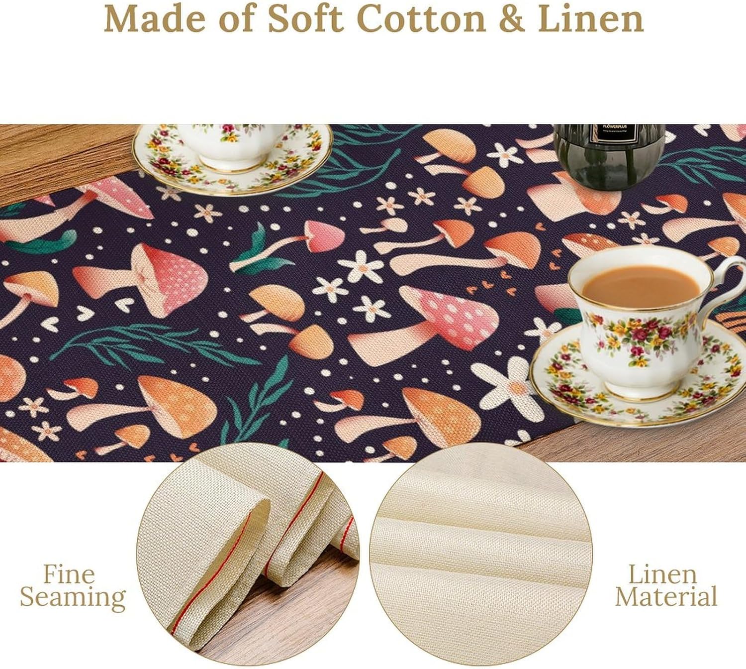 Mushroom Table Runner,Retro Forest Plant Table Cloth Farmhouse Kitchen Dining Table Decoration for Home Party Decor 13x60 Inch