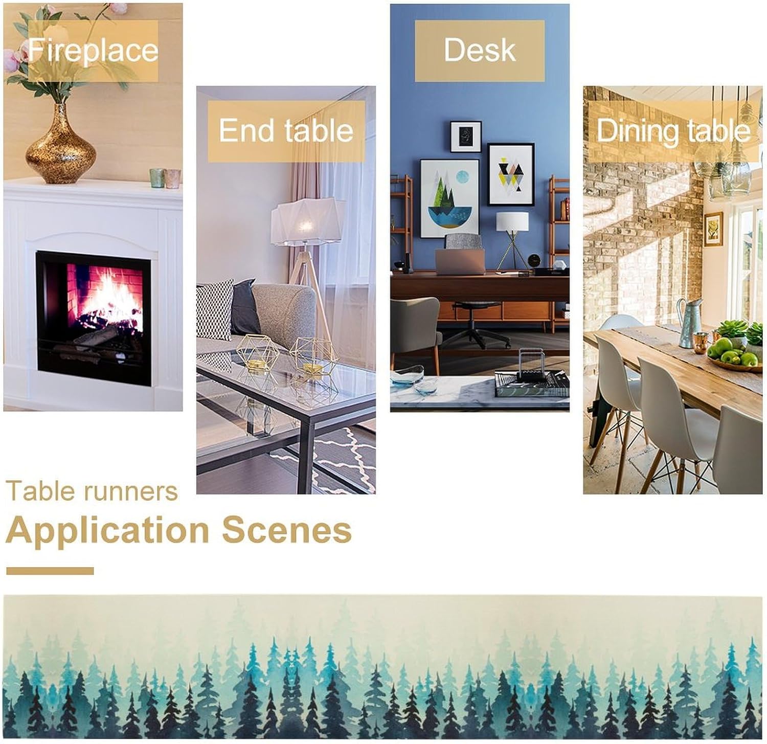 Misty Forest Table Runner,Foggy Blue Forest Landscape Table Runner for Kitchen Dining Table Home Party Decoration 13x108 Inch