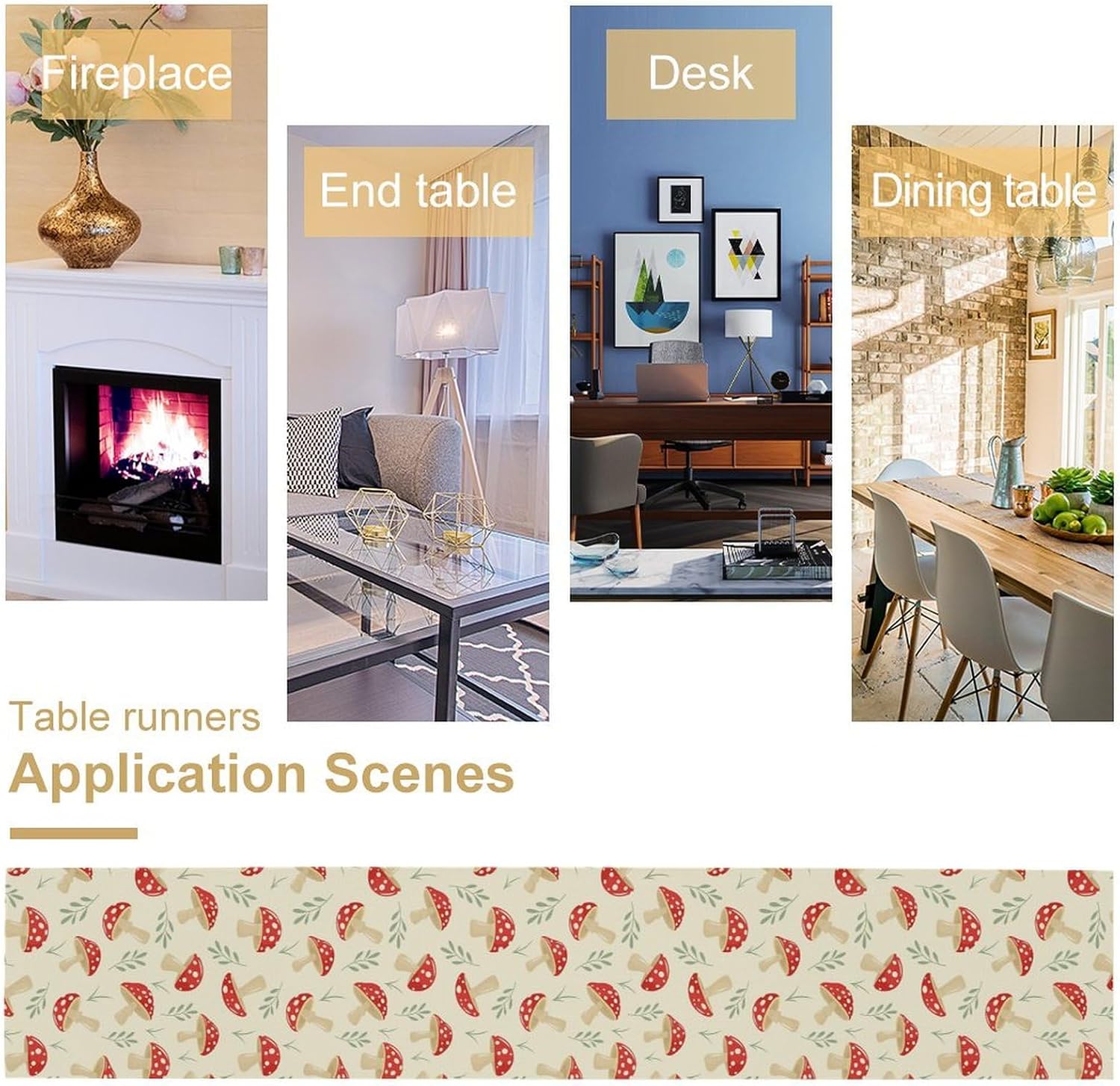 Mushroom Table Runner,Vintage Plant Print Table Runner for Kitchen Dining Table Home Party Decoration 13x36 Inch
