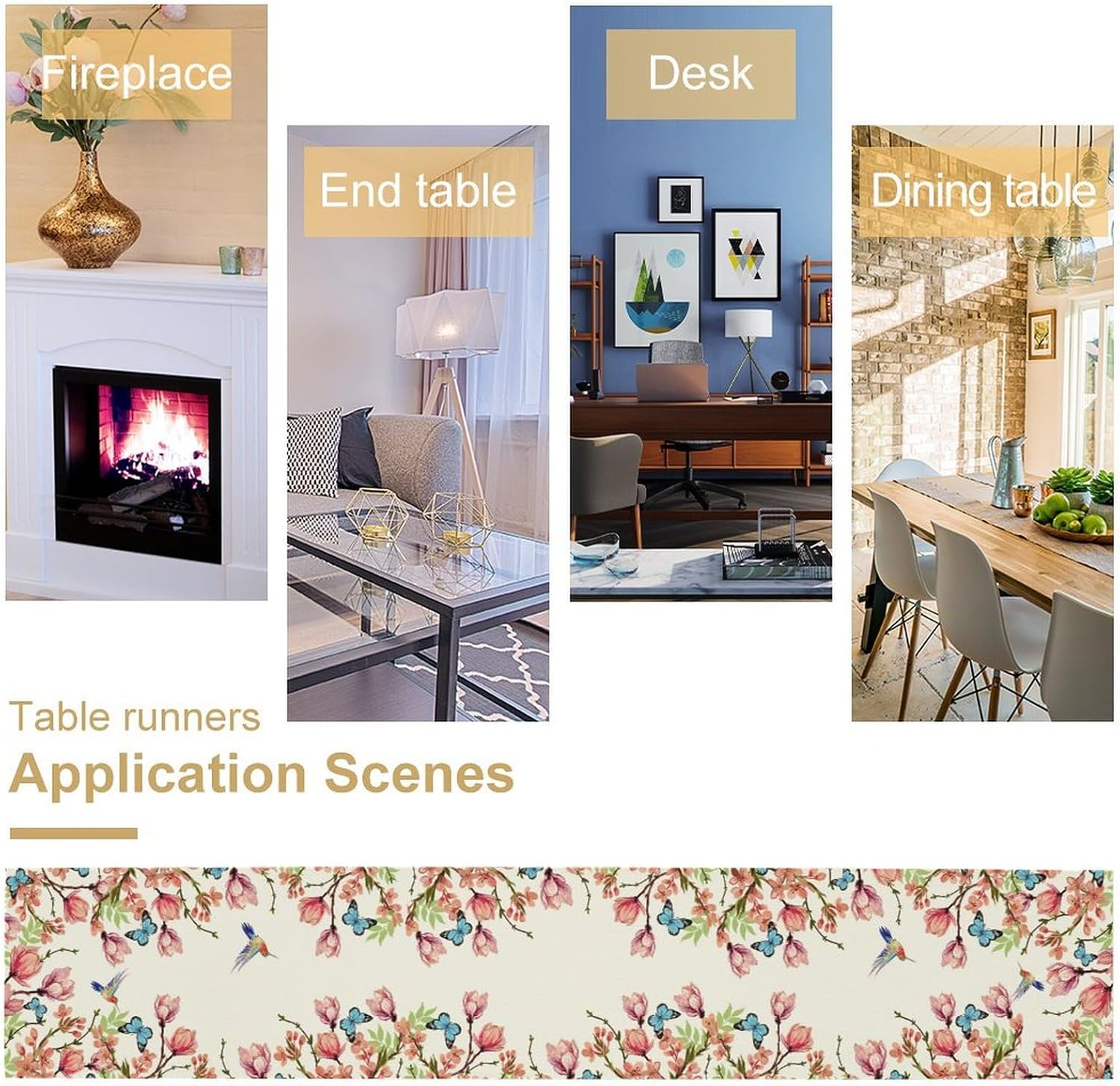 Flowers Table Runner,Floral Bird Butterfly Spring Table Cloth Kitchen Dining Table Home Party Decoration 13x120 Inch