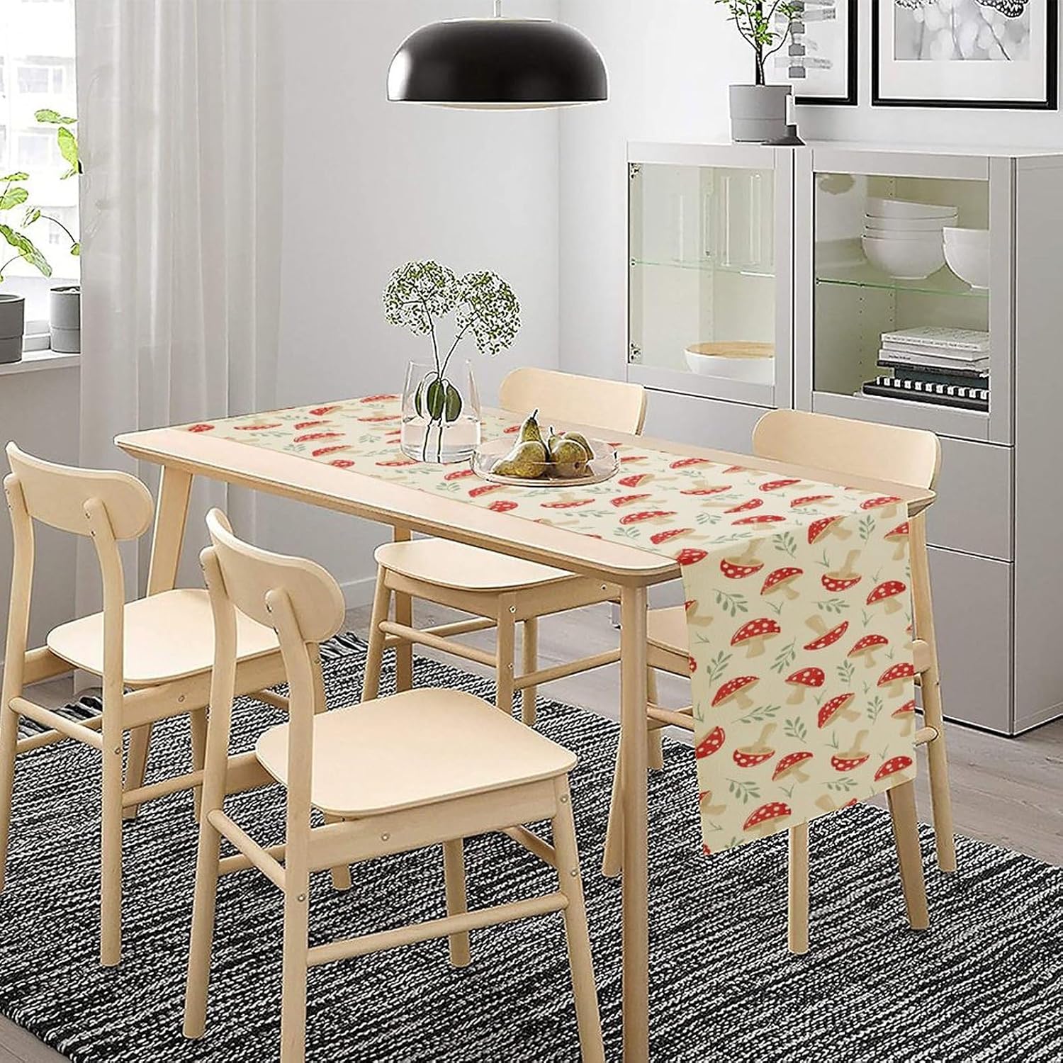 Mushroom Table Runner,Vintage Plant Print Table Runner for Kitchen Dining Table Home Party Decoration 13x120 Inch