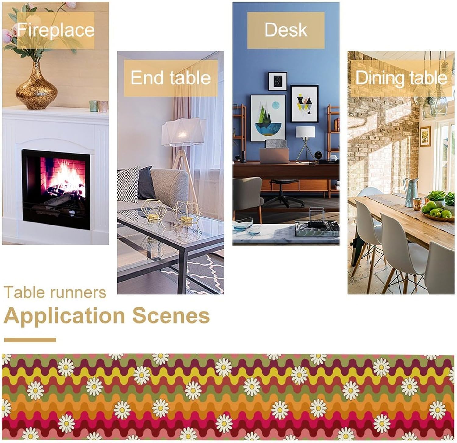 Vintage Floral Table Runner,60s 70s Colorful Retro Abstract Hippie Print Table Runner for Kitchen Dining Table Home Party Decoration 13x108 Inch