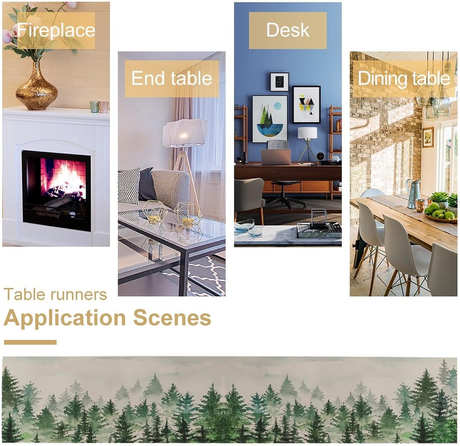 Foggy Forest Table Runner,Green Forest Natural Landscape Table Runner for Kitchen Dining Table Home Party Decoration 13x108 Inch