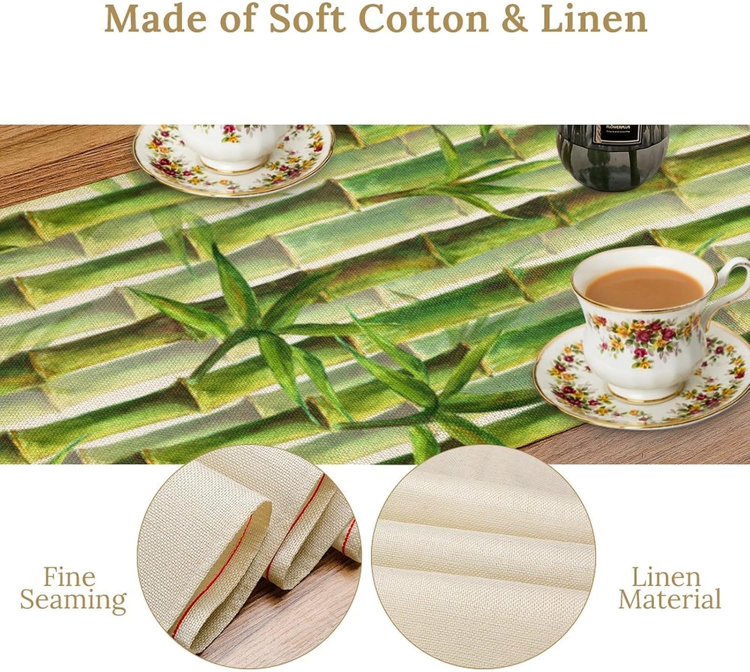 Bamboo Table Runner,Green Plant Print Table Runner for Kitchen Dining Table Home Party Decoration 13x60 Inch