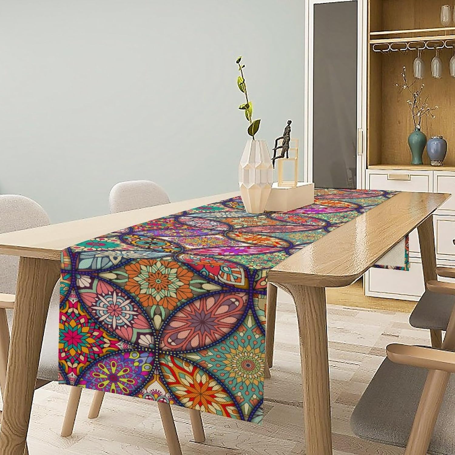 Boho Floral Table Runner,Colorful Flower Retro Bohemian Table Cloth Kitchen Dining Table Home Party Decoration 13x120 Inch