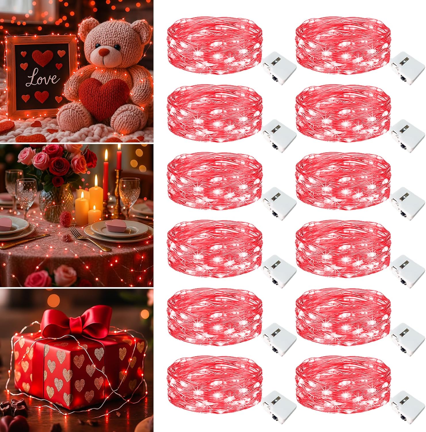 12 Pack Fairy Lights Battery Operated - 7ft 20 Led Twinkle Lights 3 Modes, Bulk Mini String Lights Waterproof for Mason Jars Vases DIY Party Wedding Decoration Christmas - Red