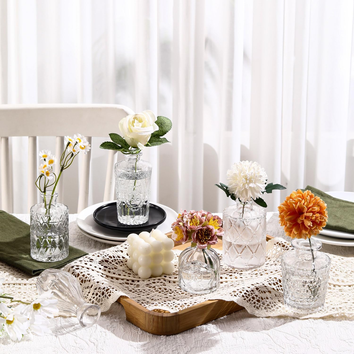 - Premium Quality: These glass flower vases are made of 100% premium Soda Lime glass, which is sturdy, leak-proof, easy to clean, and not easily broken. These vase sets have been drop-tested and are more sturdy than other glass vases. The handmade embossed pattern makes these vintage bud vases delicate and vivid