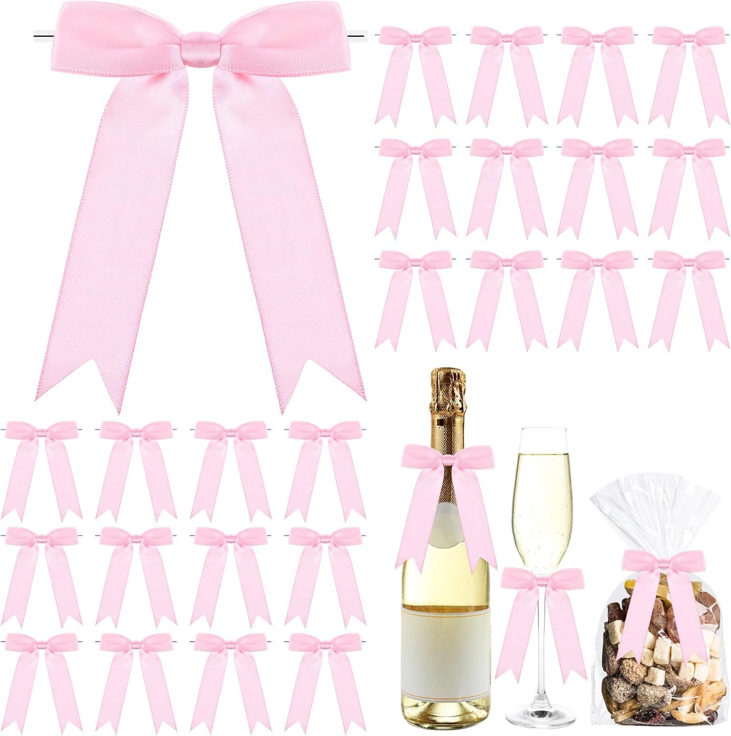 - Multipurpose Decoration: our pre tied bows can be utilized in many ways; From fixing various plastic bags like snack bags, gift bags, candy bags, cookie bag, bread bag and more, to decorating Christmas trees, gift boxes, gift baskets, bottles, invitation cards, hairpins, scrapbooks and other DIY projects; You can make fun and beautiful objects with family and friend