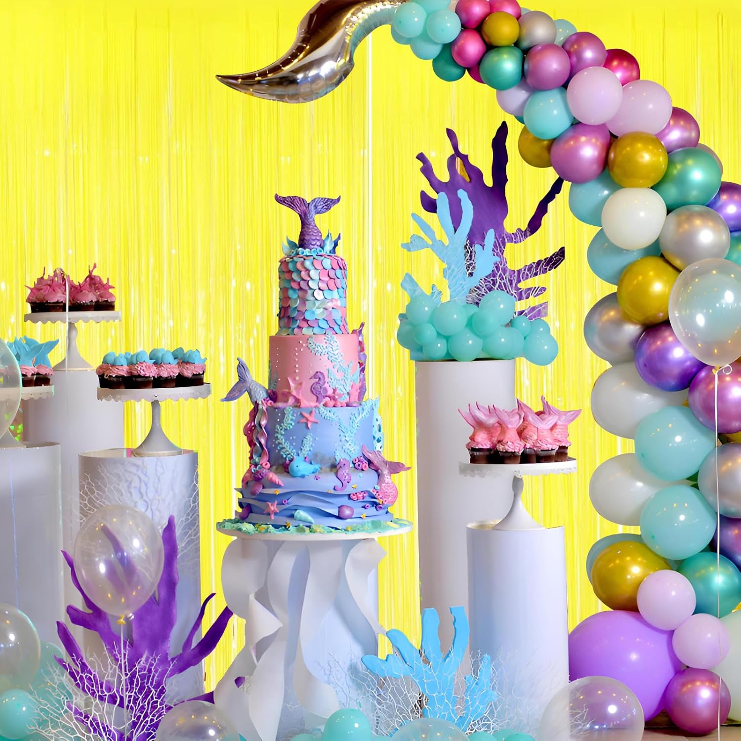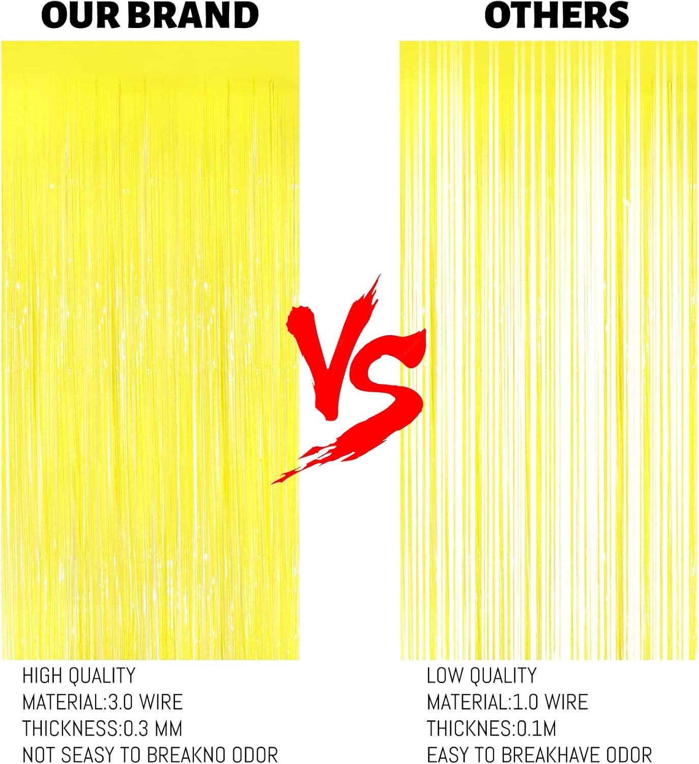 Keyali 2 Pack 3.3 * 8.3 ft Foil Curtain Metallic Tinsel Fringe Curtains Photo Booth Props Backdrop for Birthday Wedding Engagement Baby Shower Christmas Holiday Celebration Party,Macaron Yellow