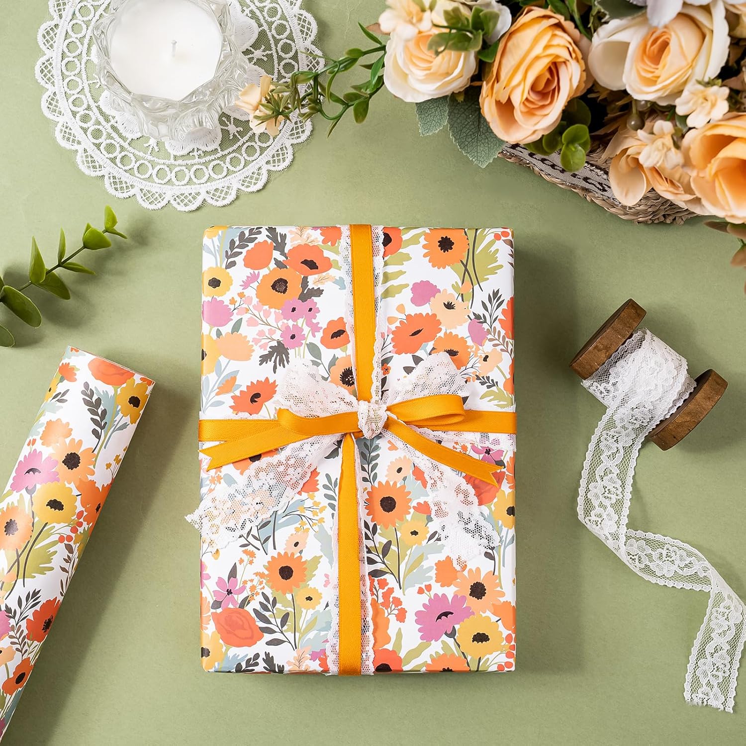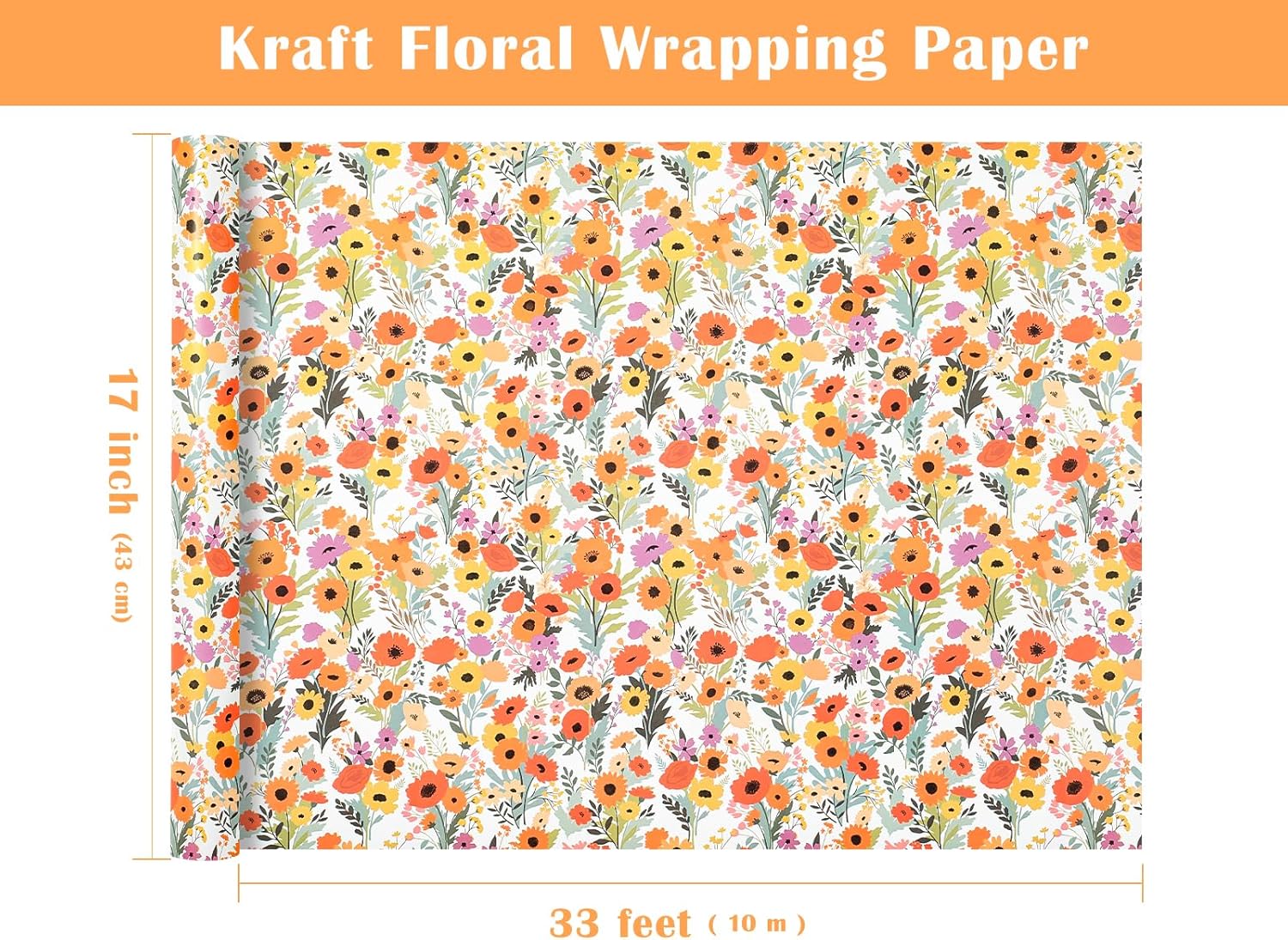 - Floral Design: Kraft bright summer floral wrapping paper design, will make your gift exudes charm and elegance. The flower wrapping paper make it ideal for creating a wonderful gift presentation that leaves a lasting impression.